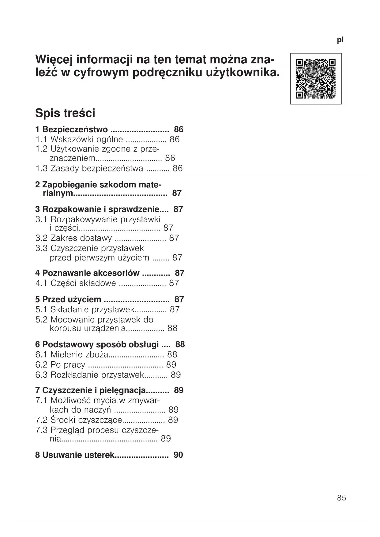 Więcej informacji na ten temat można zna- leźć w cyfrowym podręczniku użytkownika. Spis treści 1 Bezpieczeństwo .........................86