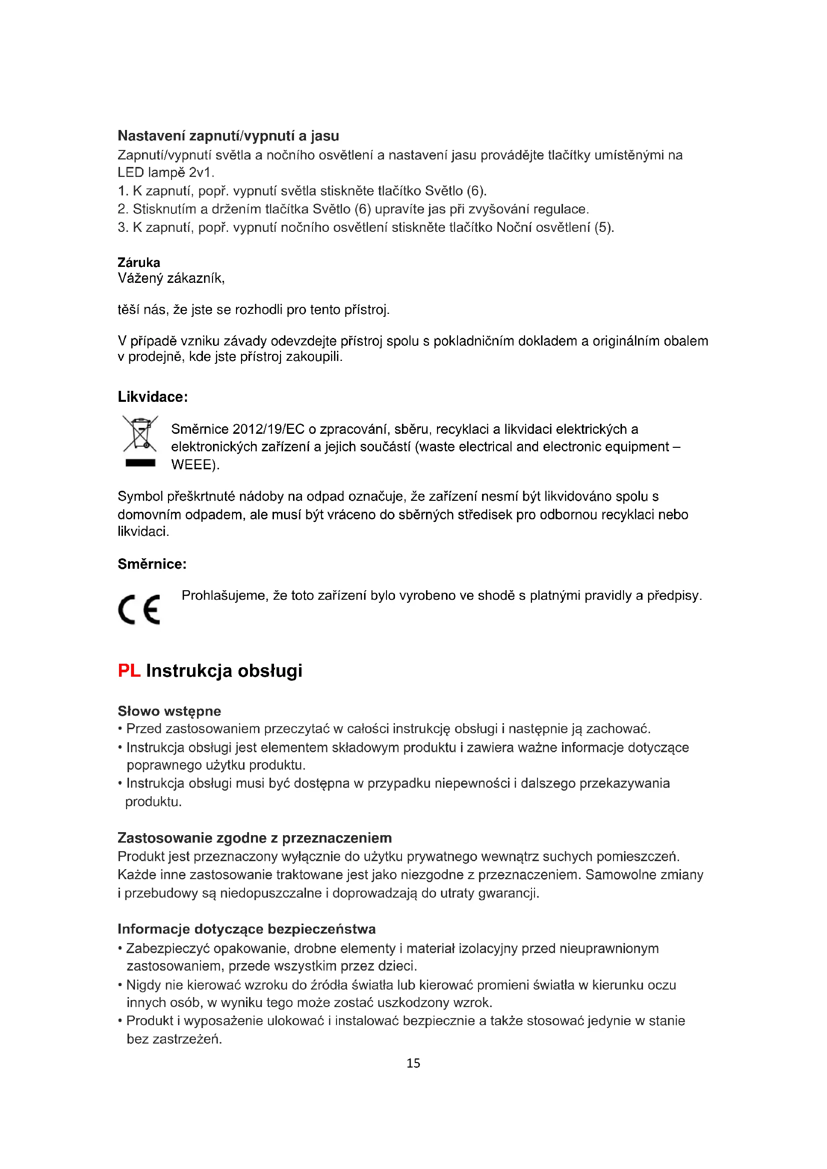 Utylizacja: Dyrektywa 2012/19/UE w sprawie obchodzenia się, zbioru, powtórnego użycia i utylizacji urządzeń elektrycznych i elektronicznych i ich elementów (waste electrical and electronic equipment –WEEE). Przekreślony symbol zbiornika na śmieci znaczy, że nie wolno usuwać tego urządzenia wraz z odpadami gospodarstwa domowego, lecz należy je oddać w wyposażonych w tym celu centrach zbiórki w celu stosownego powtórnego użycia względnie utylizacji. Wytyczne: Wyjaśniamy, że urządzeni to zostało wyprodukowane zgodnie z obowiązującymi regułami i przepisami.