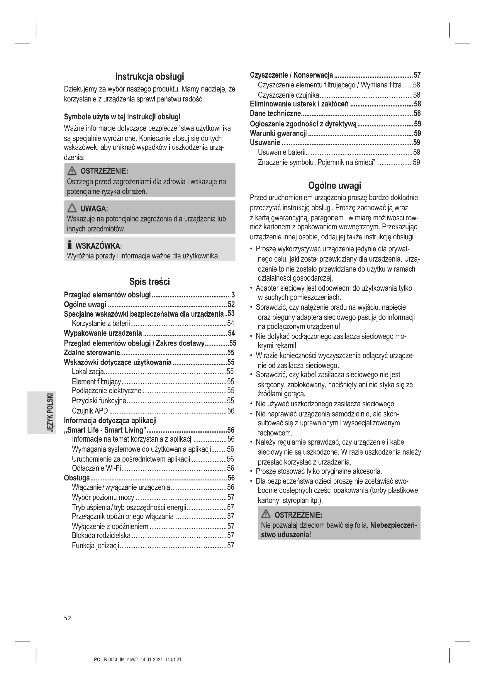 posługiwać się urządzeniem. Zwrócić je natychmiast do sprzedawcy.PC-LR3083_IM_new2_14.01.2021 14.01.21