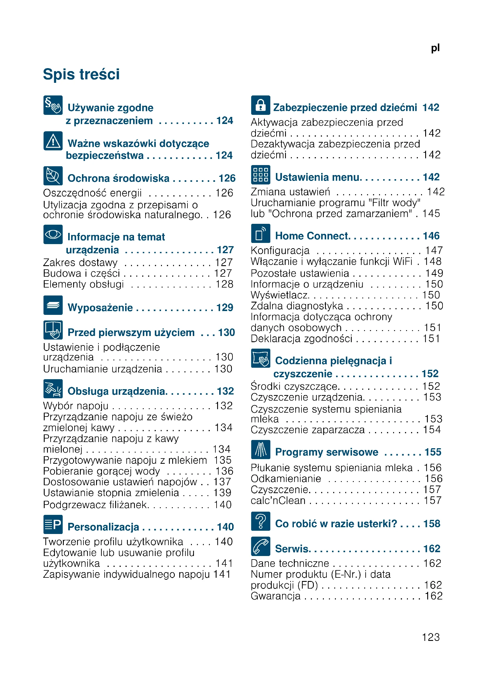 - Spis treci plInstrukcj a obsł ugi 8 Używanie zgodne z przeznaczeniem p. 124