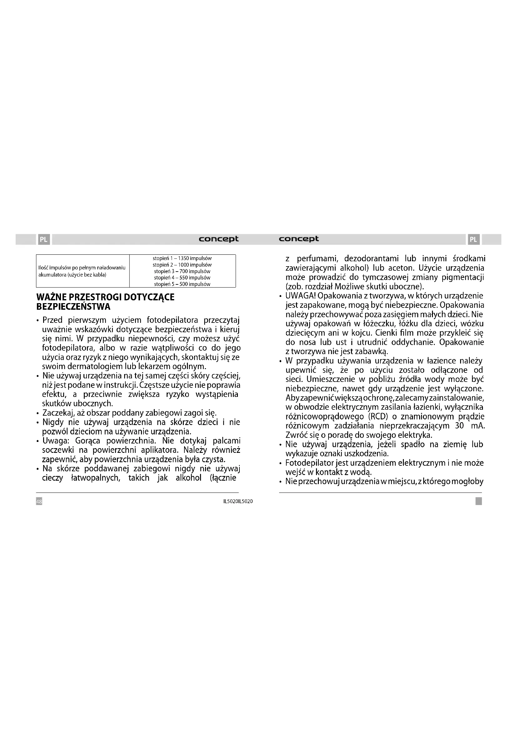 Perfect Skin IL5020 - Depilator Concept - Bezpłatna instrukcja obsługi