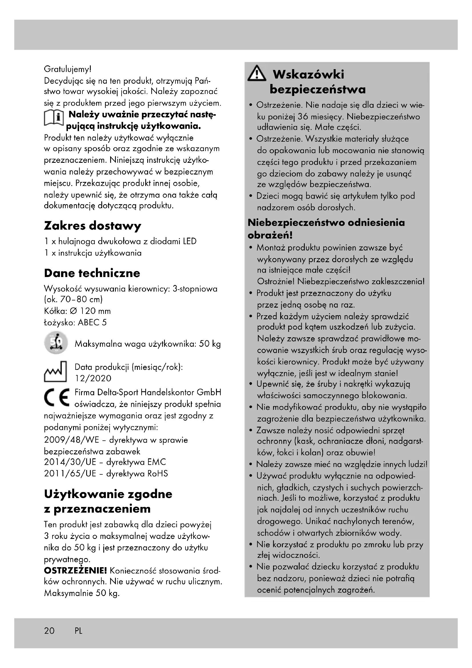 - Przed kaźdym uzyciem naleź sprawdzić produkt pod kqtem uszkodzen lub zuźycia. Naleź zawsze sprawdzać prawidowej mo-cowanie wzystkich srb lub oraz regulacja wysokosci kierownicy. ProduktMZebyc uzywany wyțacznie, jesti jest w idealnym stanie!