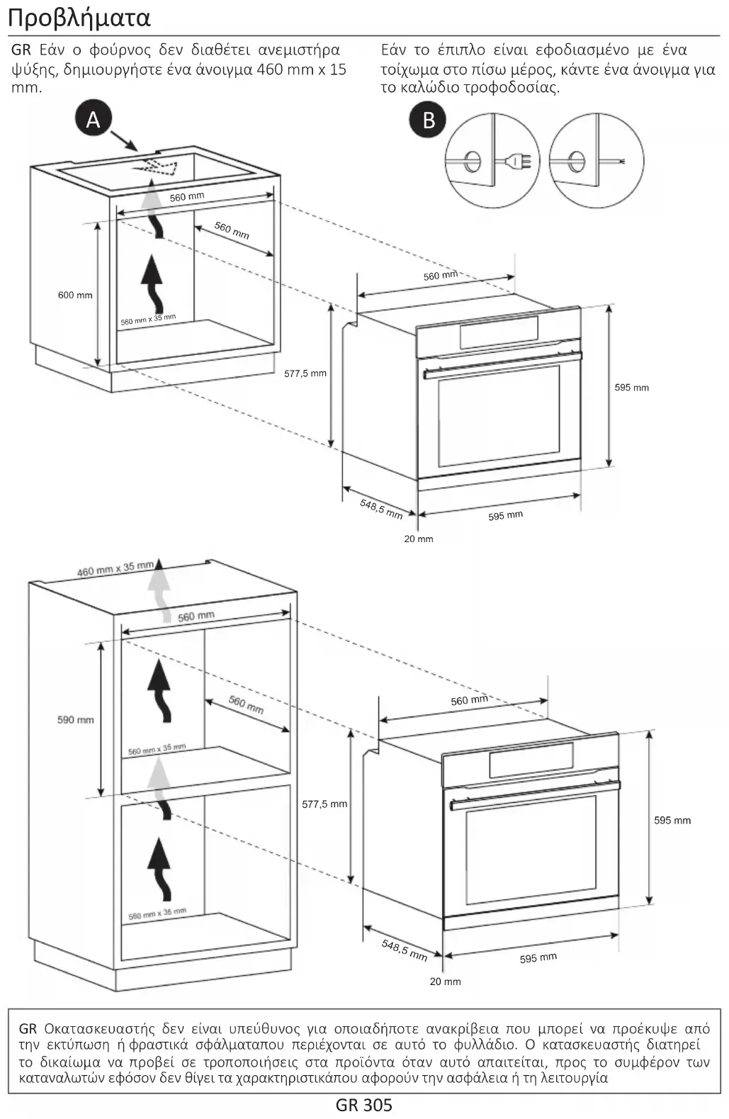 - Piekarnik można umieścić wysoko w słupku lub pod blatem roboczym. Przed montażem zapewnić dobrą wentylację w przestrzeni piekarnika, aby umożliwić właściwą cyrkulację świeżego powietrza potrzebnego do chłodzenia i ochrony częś- ci wewnętrznych. Otwory podane na ostatniej stronie wykonać zgodnie z typem okucia.