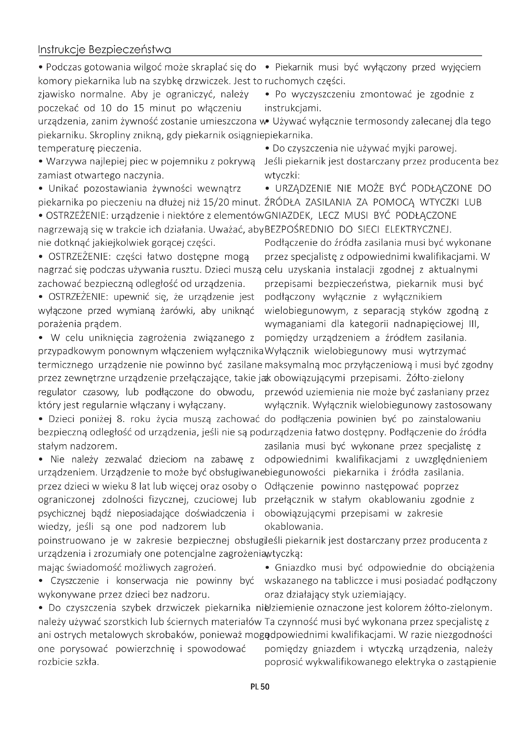 - Do czyszczenia nie używać myjki parowej. Jeśli piekarnik jest dostarczany przez producenta z wtyczką: PL 50PL 51
