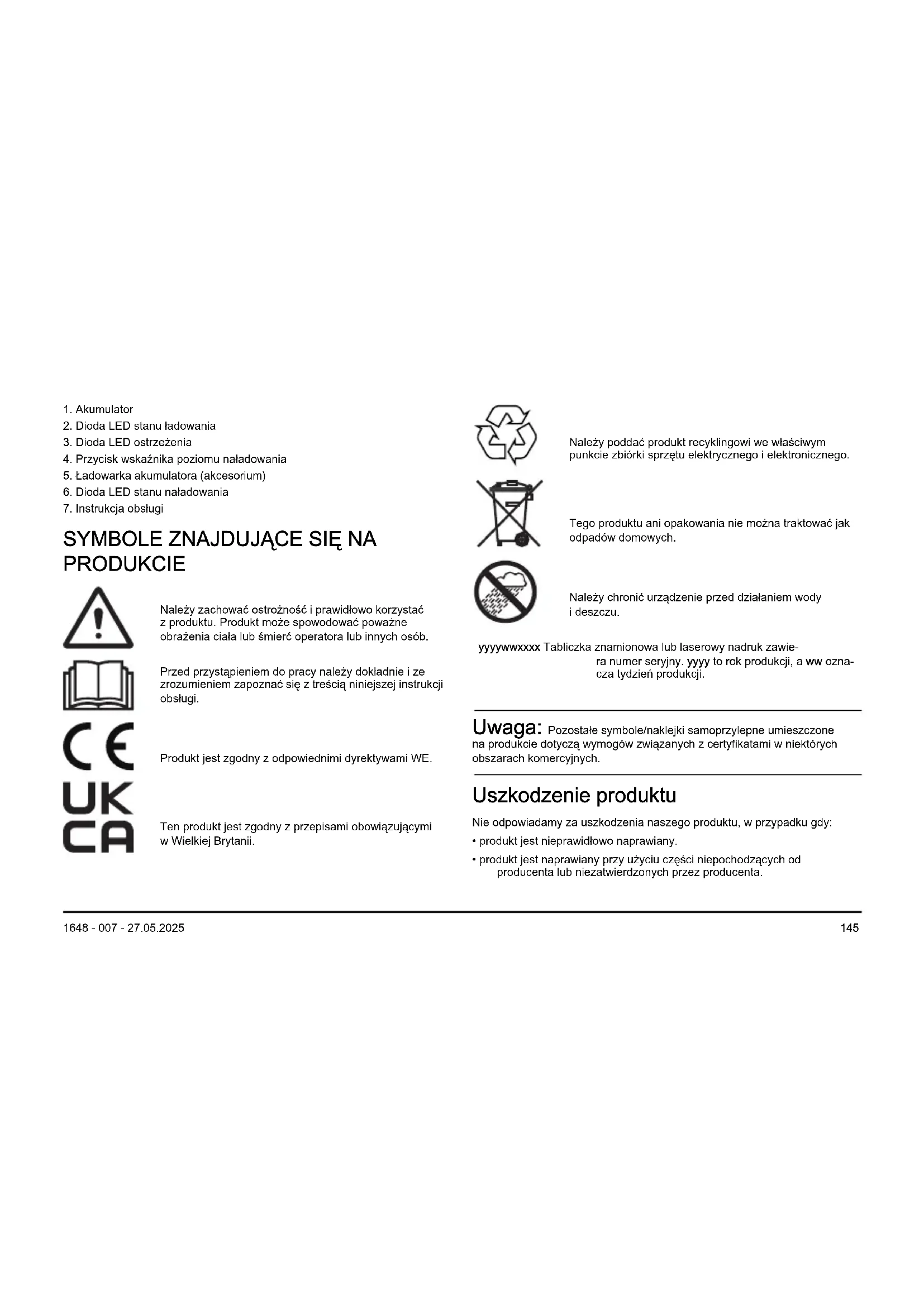 1648 - 007 - 27.05.2025• Akumulator należy chronić przed uszkodzeniami mechanicznymi.