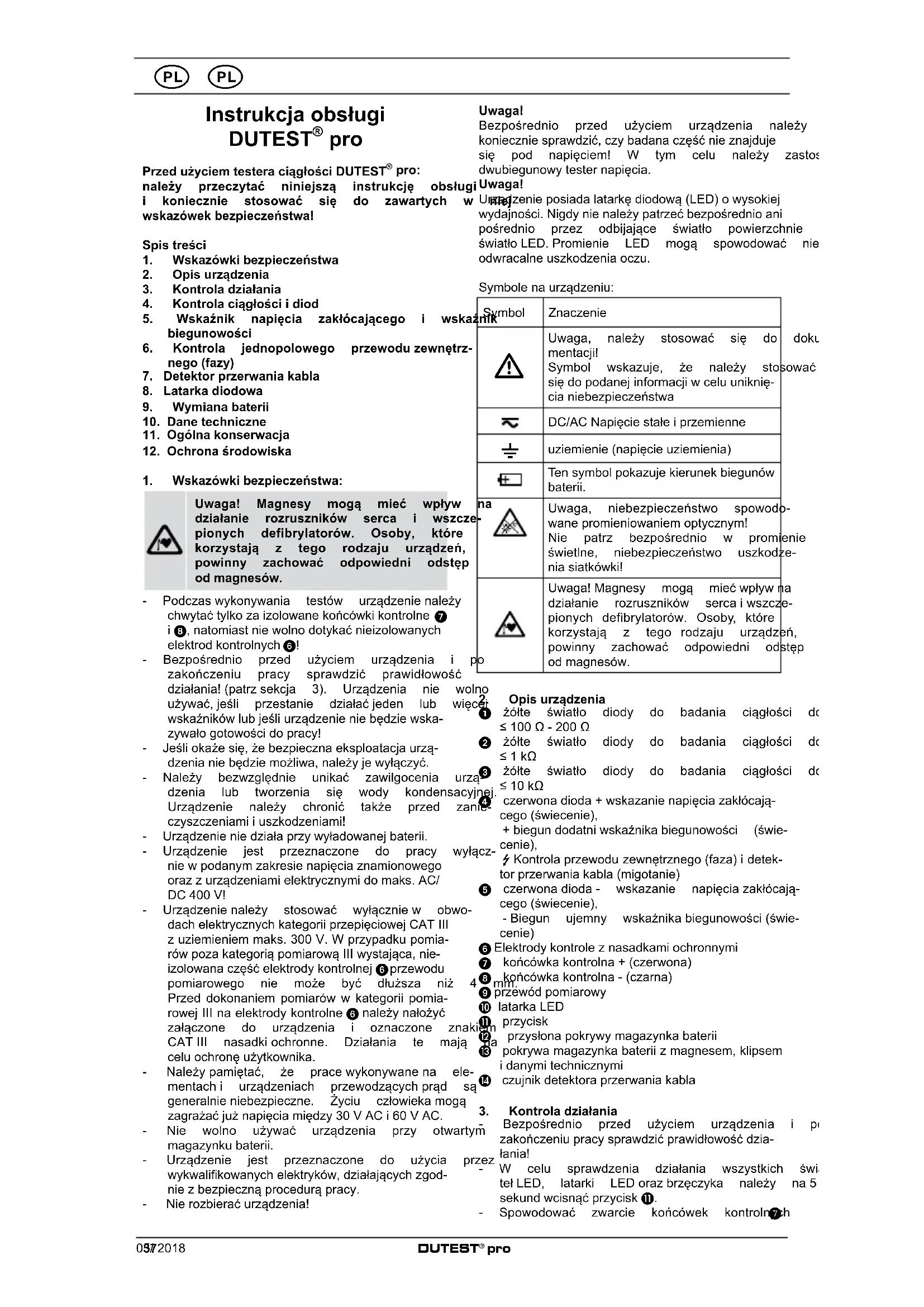 INSTRUKCJA OBSŁUGI DUTEST pro BENNING
