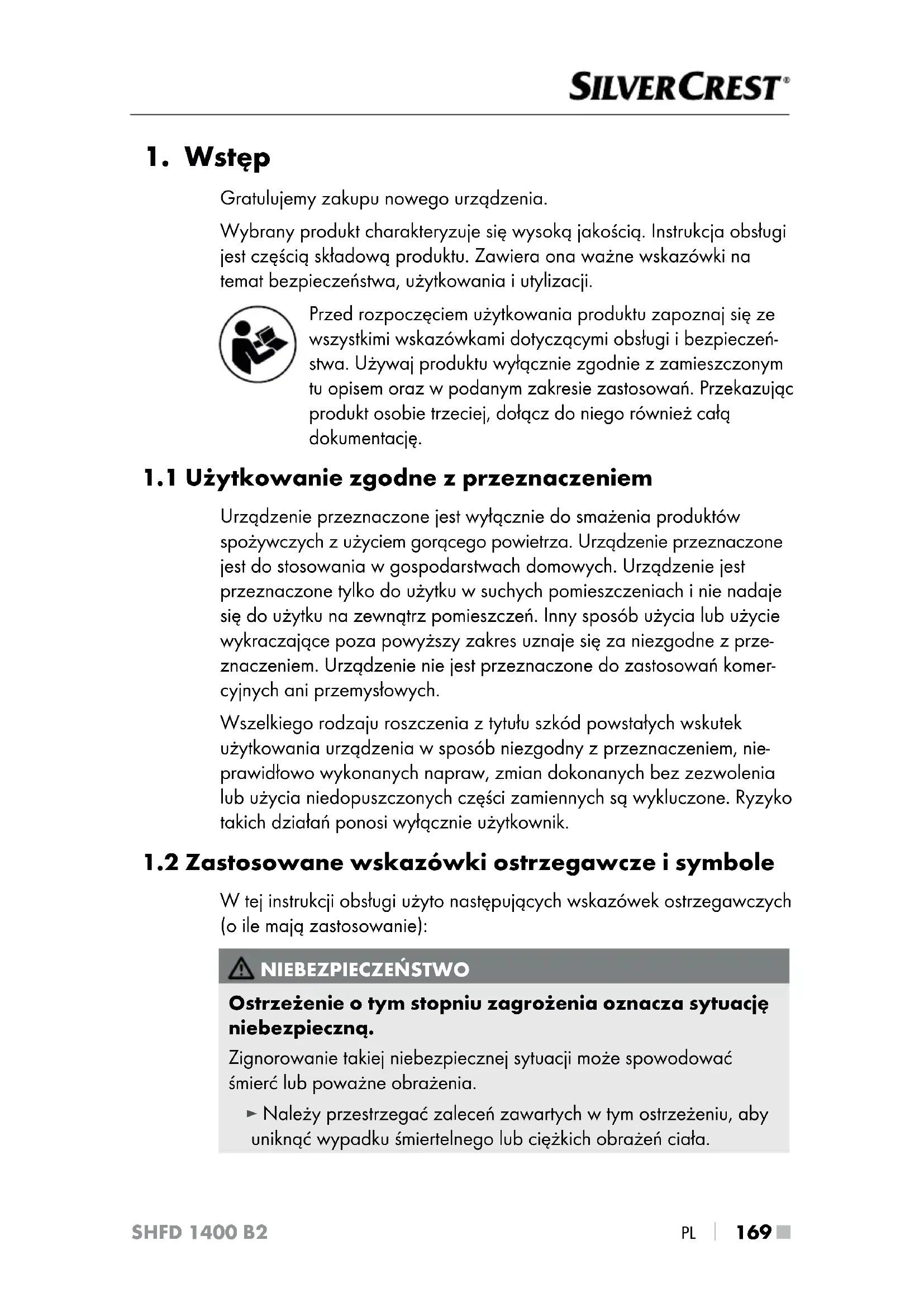 1.1 Użytkowanie zgodne zprzeznaczeniem ...................169