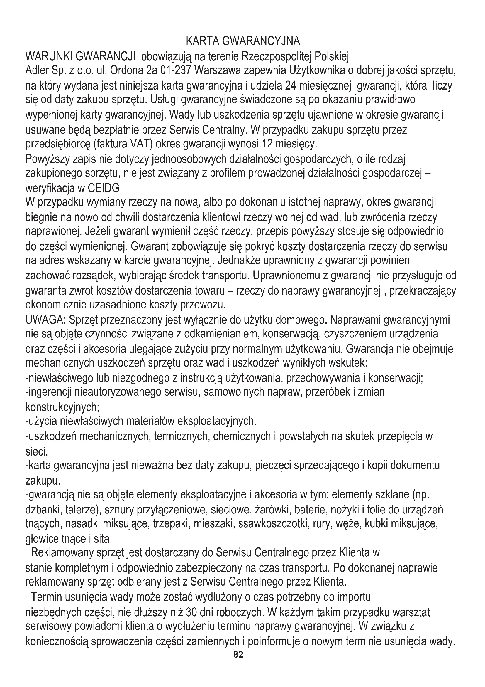 INSTRUKCJA OBSŁUGI AD 2178 ADLER