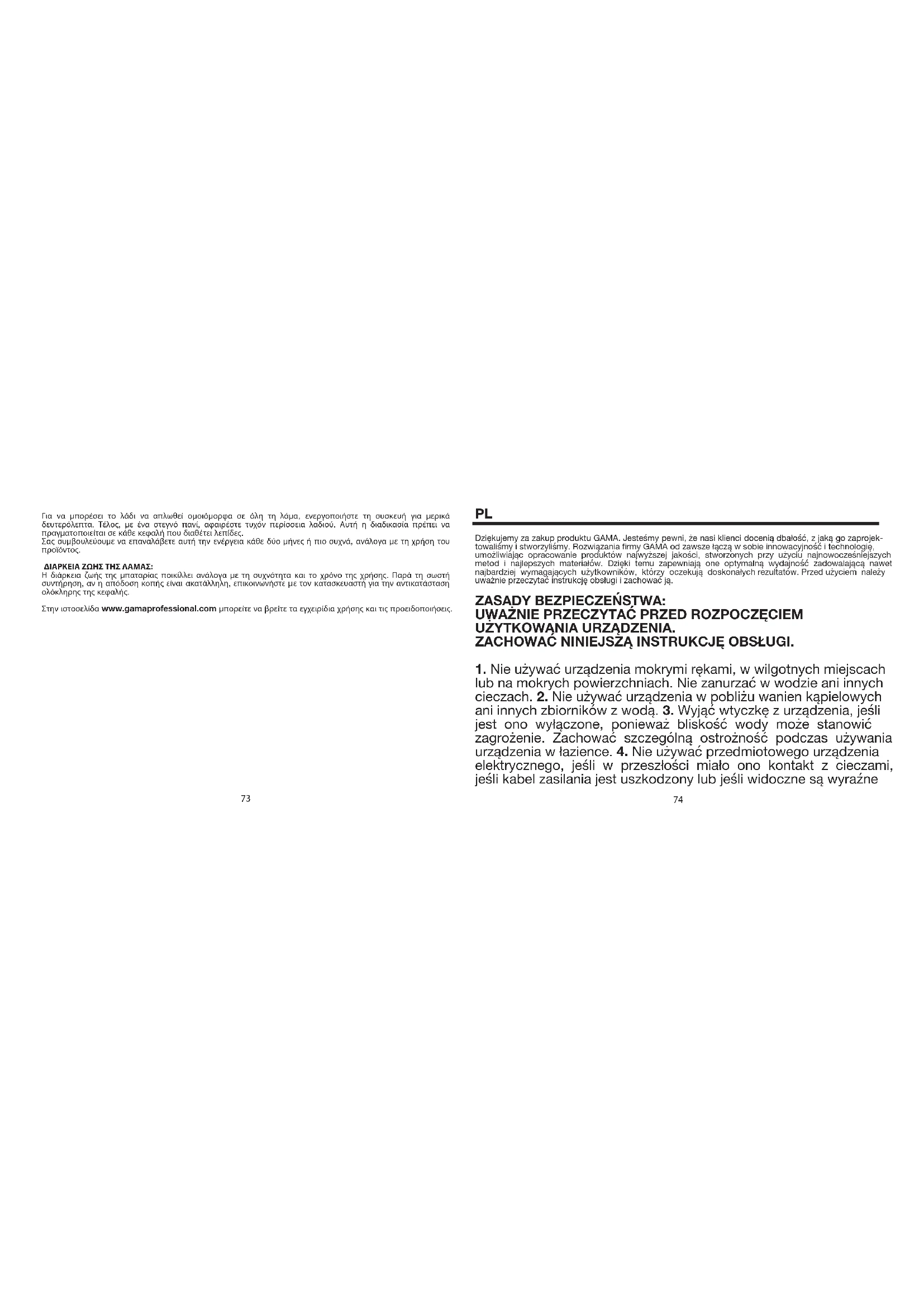 Na stronie Internetowej www.gamaprofessional.com dostepne sq instrukcje obslugi i zasady bezpieczelnstwa.