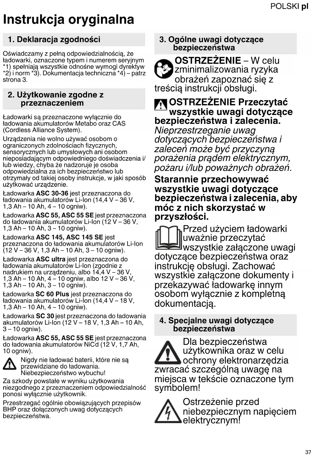 Ladowarka ASC ultra jest przyznaczona do tawkania akumulatorow Li-lon (zgodnie z nadrukiem na urzadzeniu, albo 14,4 V - 36 V, 1,3 Ah - 10 Ah, 4 - 10 ogniw, albo 12 V - 36 V, 1,3 Ah - 10 Ah, 3 - 10 ogniw).