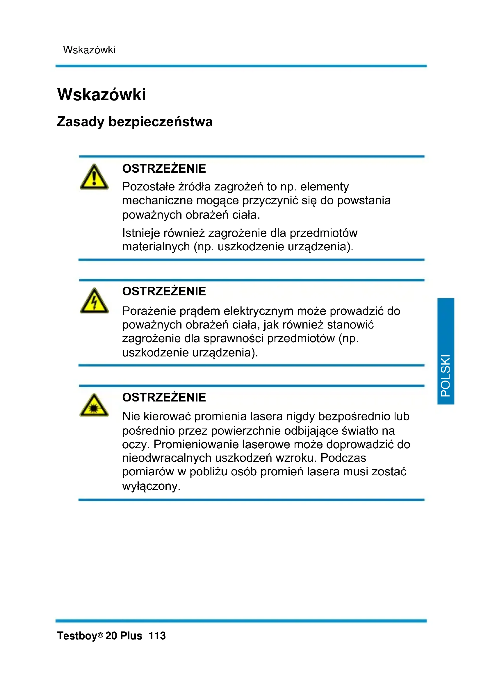 20 Plus 113 DEUTSCH DEUTSCH POLSKI Wskazówki Zasady bezpieczeństwa