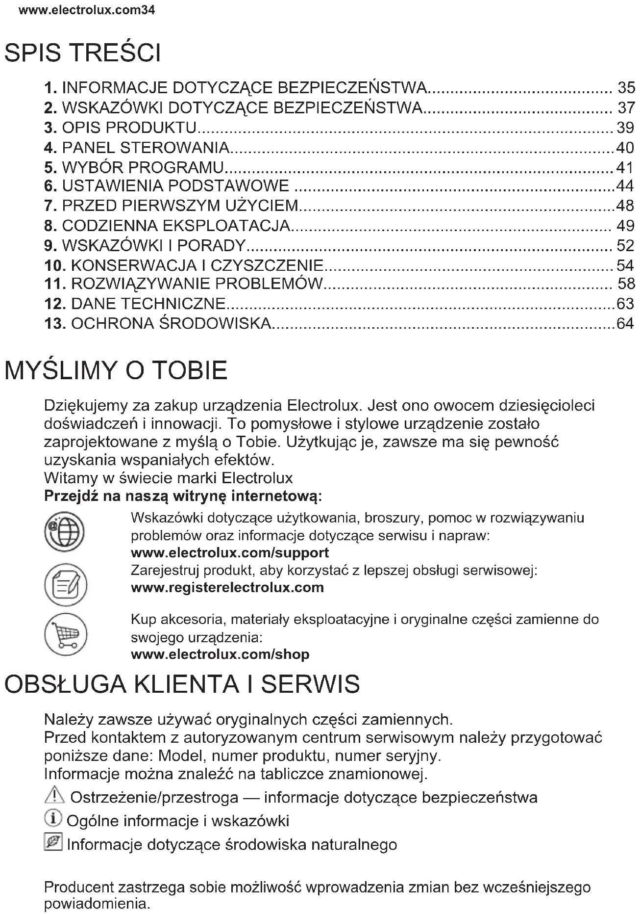 Dziekujemy za zakup urzadzenia Electrolux. jest ono owocem dziesiecieleci dozwiedczen i innowacji. To pomyslowe i stylowe urzadzenia zostato zaprojektowane z myslą o Tobie. Uzytkujac je, zawsze ma sie pewnosć uzyskania wspaniałych efektów.