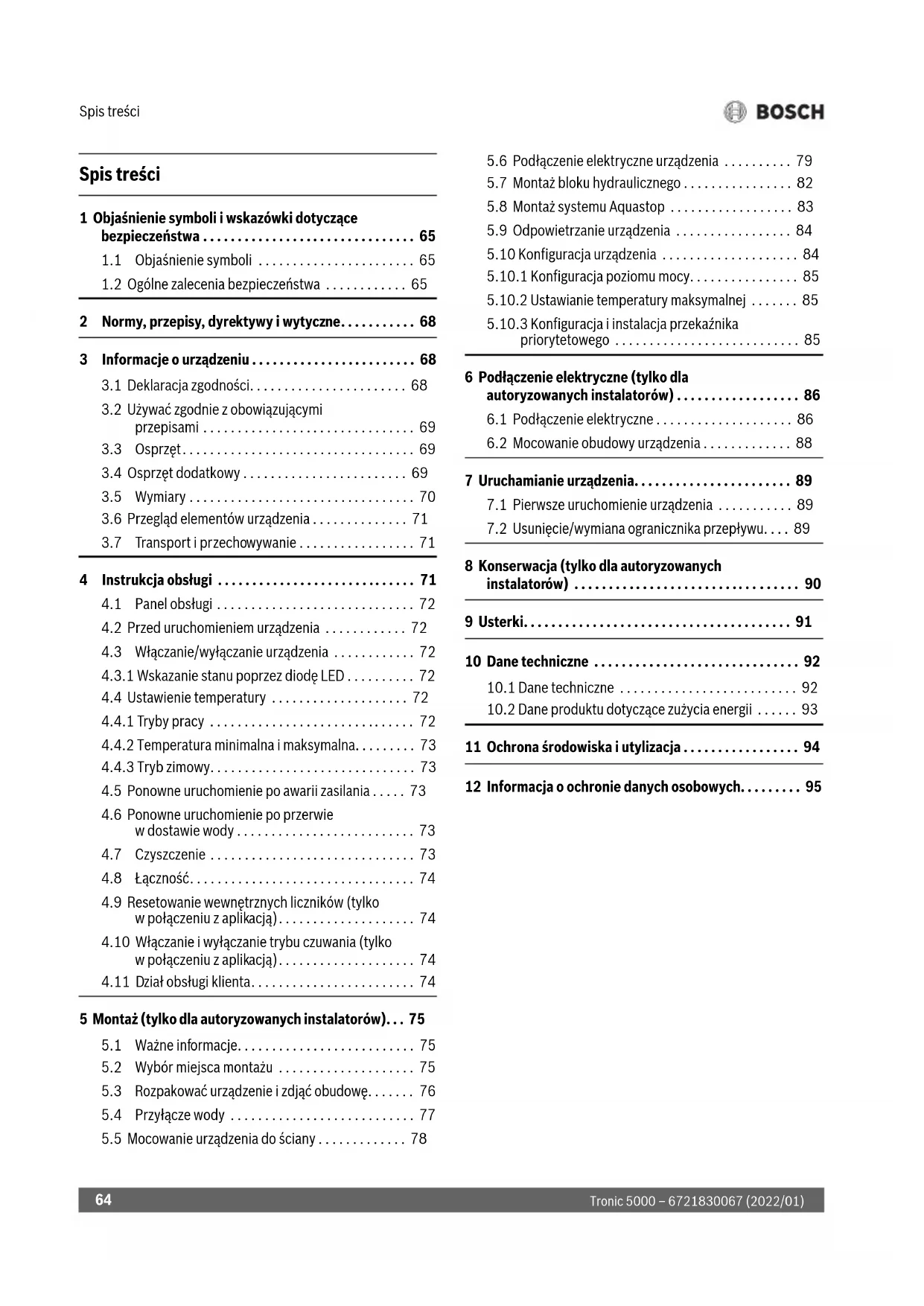Tronic 5000 – 6721830067 (2022/01) Oznakowanie CE wskazuje na zgodność produktu z wszelkimi obowiązującymi przepisami prawnymi UE, przewidującymi umieszczenie oznakowania CE na produkcie. Pełny tekst deklaracji zgodności UE dostępny jest w internecie: www.junkers.pl.