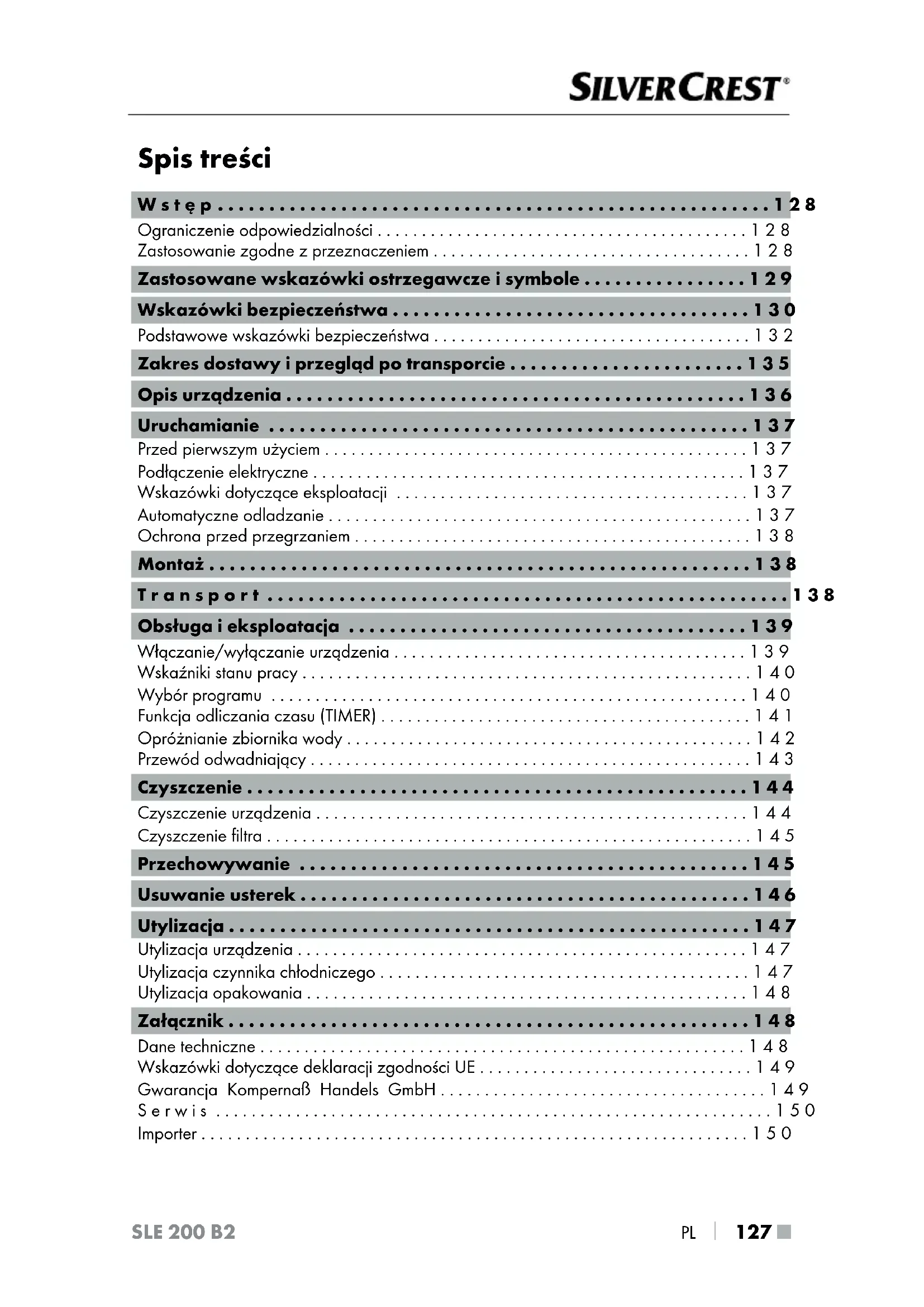 - 127 ■ SLE 200 B2 Spis treści Wstęp p. 128