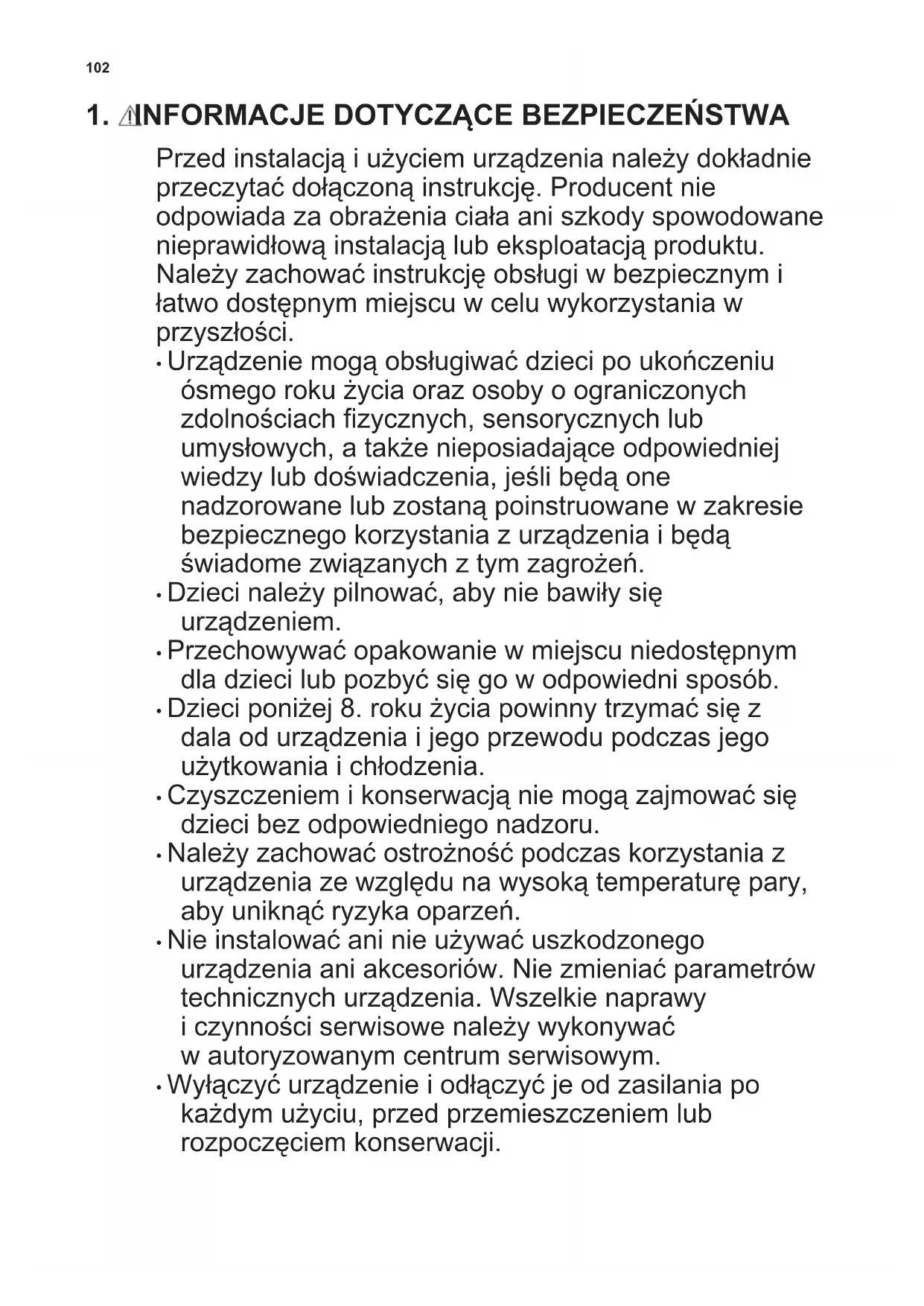 - Dzieci poniżej 8. roku życia powinny trzymać się z dala od urządzenia i jego przewodu podczas jego użytkowania i chłodzenia.