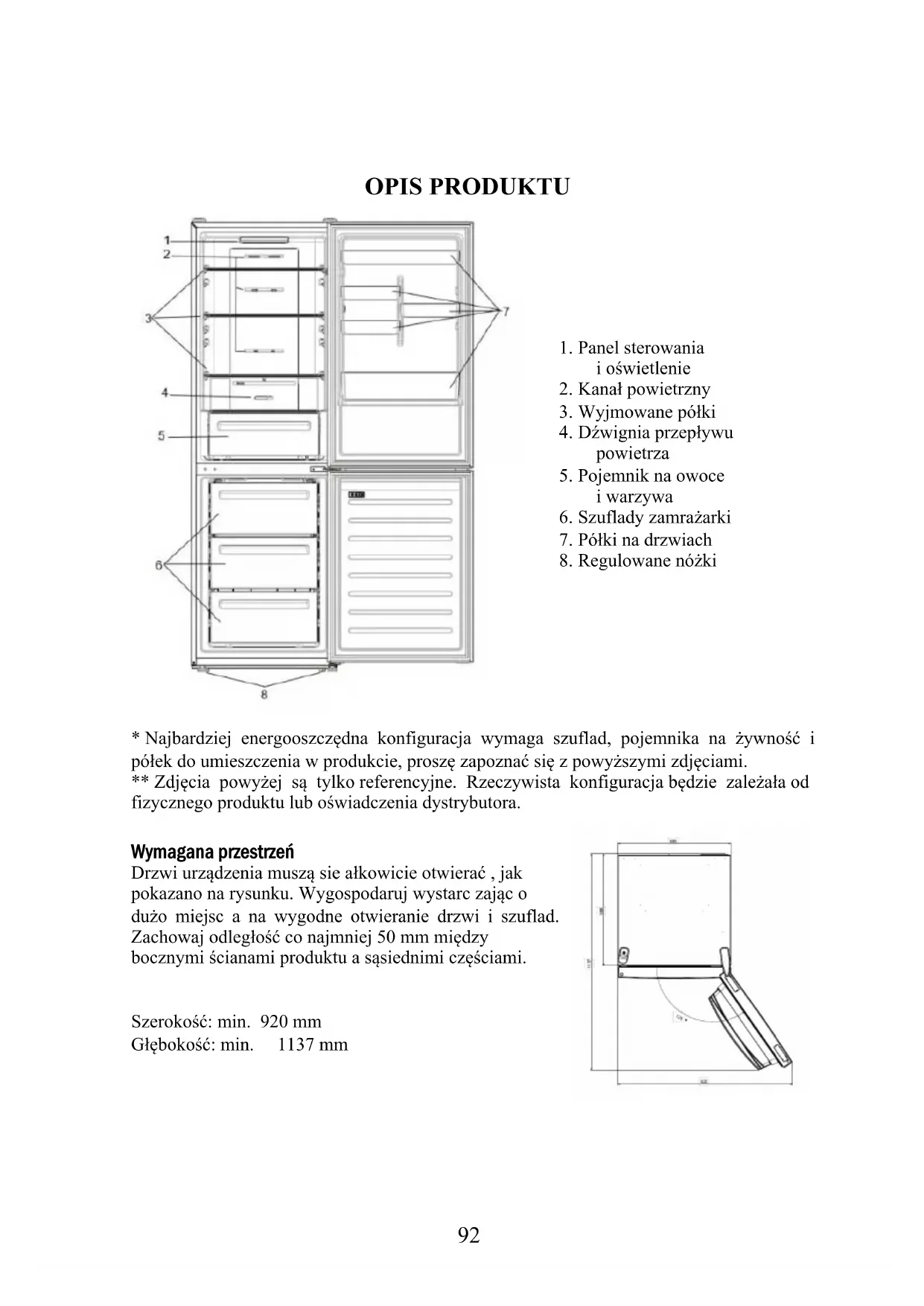 Najbardziej energooszczędna konfiguracja wymaga szuflad, pojemnika naźwynosć i polek do umieszczenia w produktie, prosze zapoznać są powyȩszymi zdjeciami.