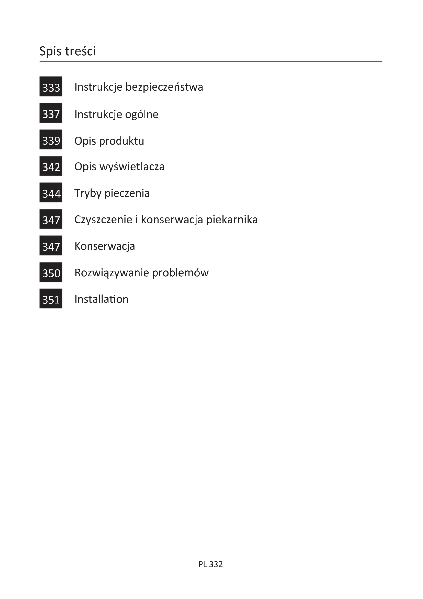- Do czyszczenia szybek drzwiczek piekarnika nie należy używać Instrukcje bezpieczeństwaPL 334 szorstkich lub ściernych materiałów ani ostrych metalowych skrobaków, ponieważ mogą one porysować powierzchnię i spow- odować rozbicie szkła.