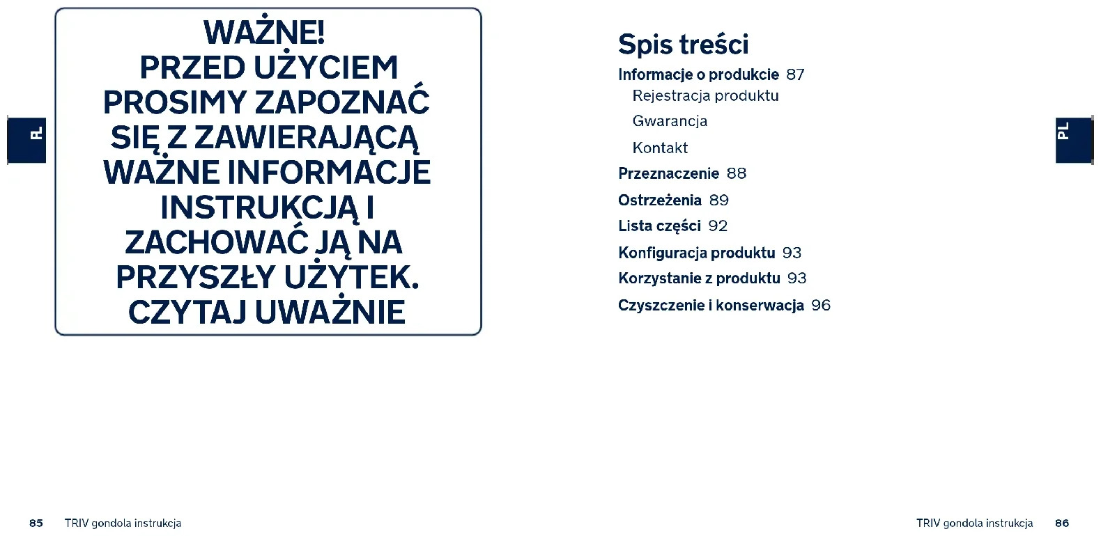 PRZYSZŁY UŻYTEK. CZYTAJ UWAŻNIE87 TRIV gondola instrukcja 88TRIV gondola instrukcja P L