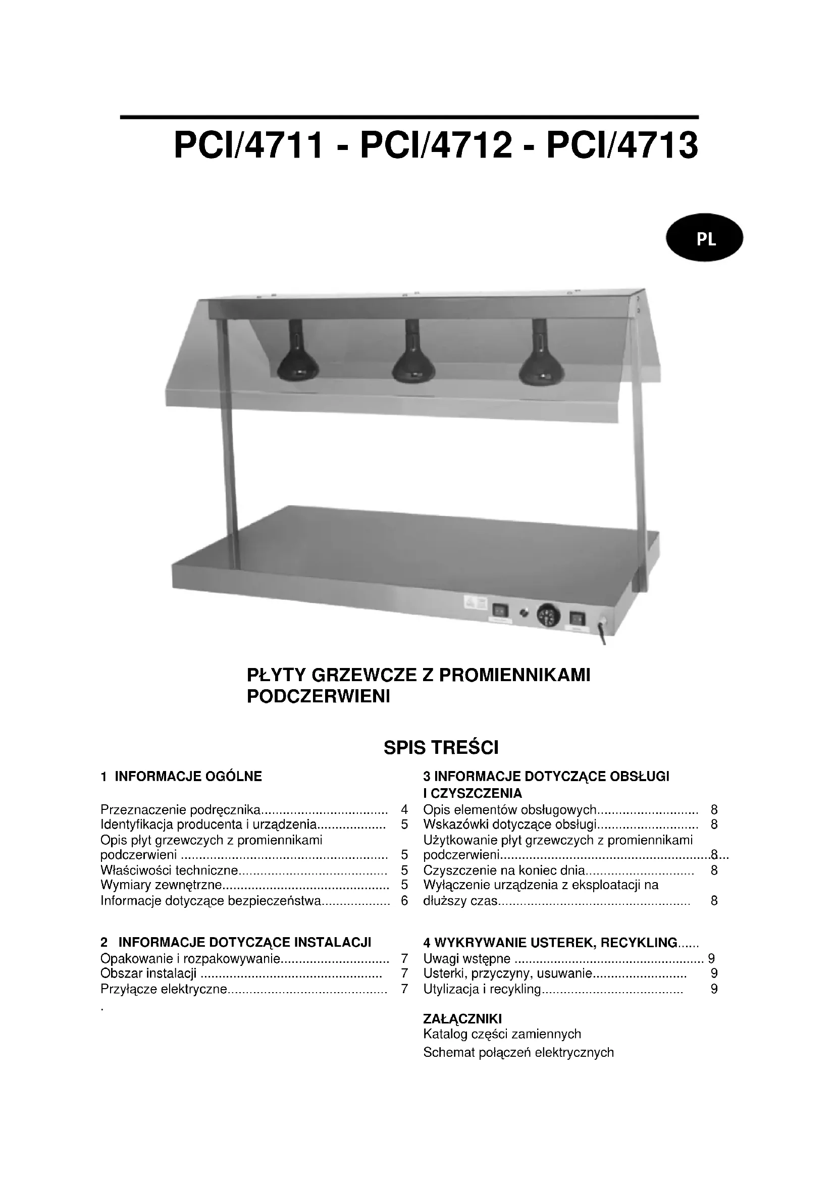 A114.242 / A114.245 / A114.250 Gebruiksaanwijzing en onderhoudshandleidingInstrukcja obsługi i konserwacji PŁYTY GRZEWCZE Z PROMIENNIKAMI PODCZERWIENIPCI/4711 - PCI/4712 - PCI/4713