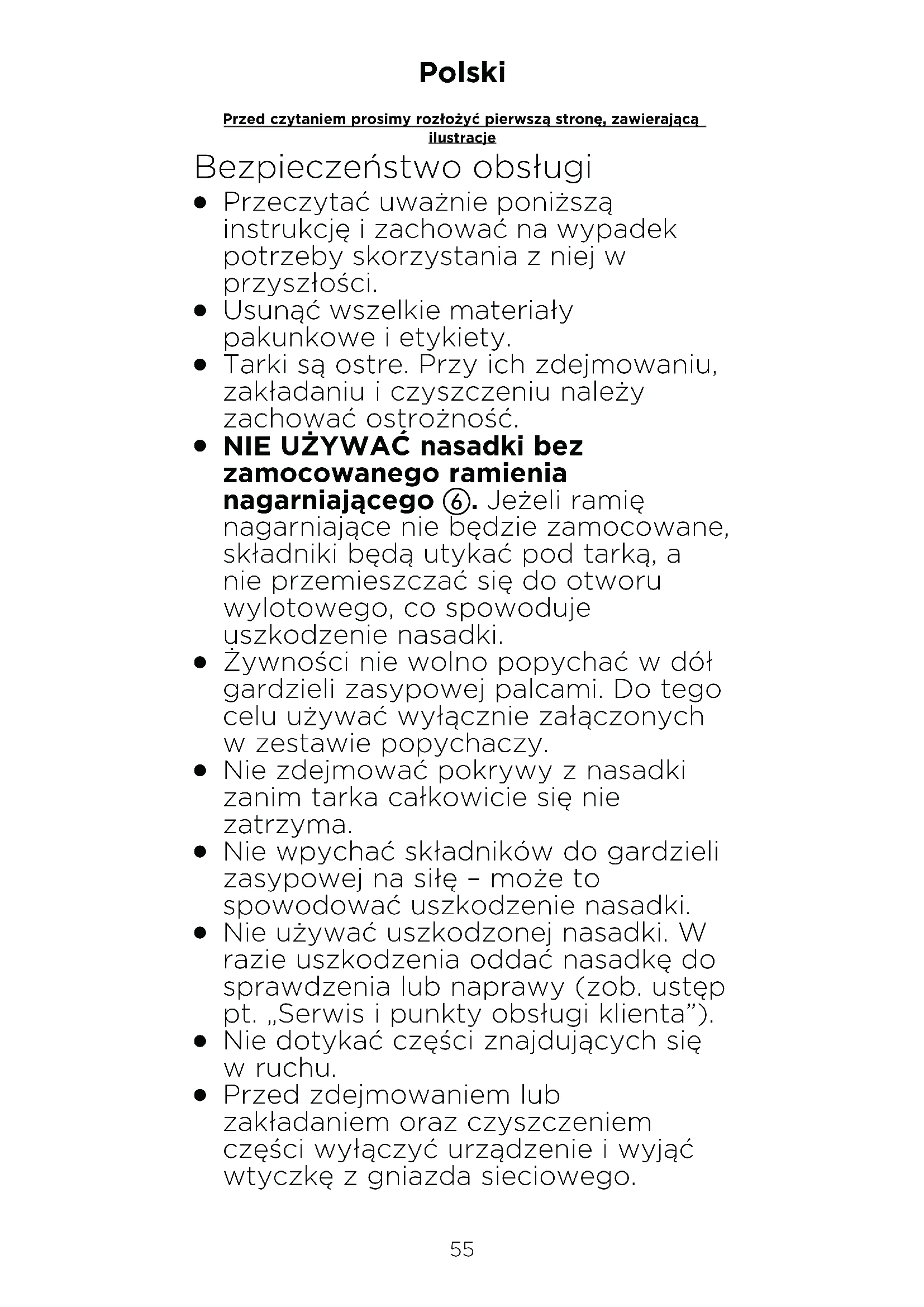 Przed zdjęciem nasadki z robota kuchennego należy zawsze wyłączyć urządzenie i wyjąć wtyczkę z gniazda sieciowego.58