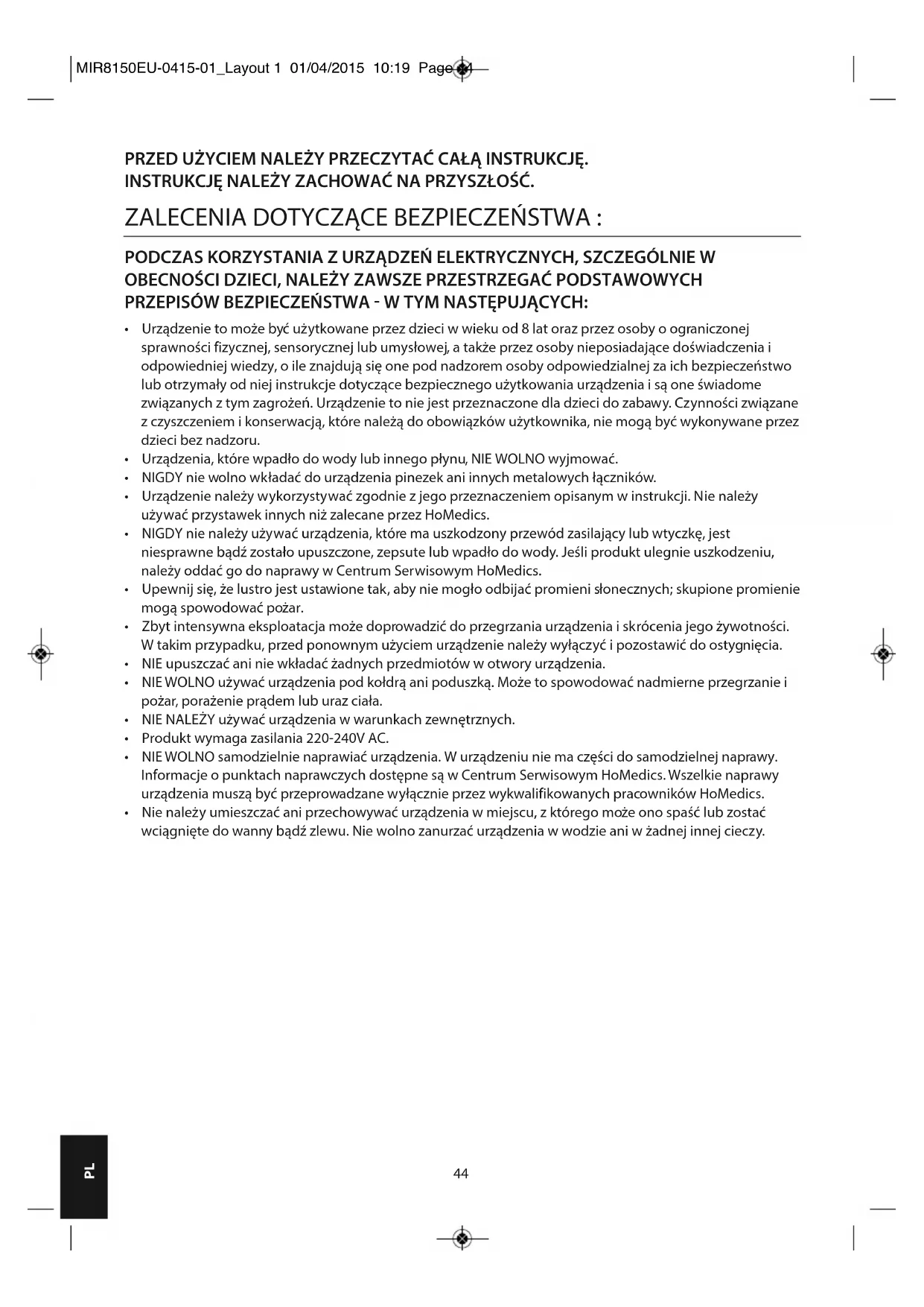 MIR8150EU - Lustro HOMEDICS - Bezpłatna instrukcja obsługi