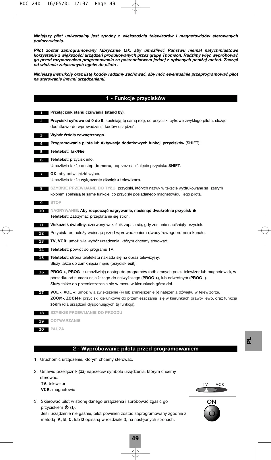 INSTRUKCJA OBSŁUGI ROC 240 THOMSON
