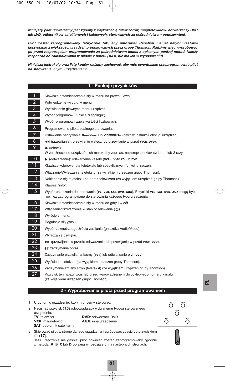 ROC 550 - Pilot zdalnego sterowania THOMSON - Bezpłatna instrukcja obsługi