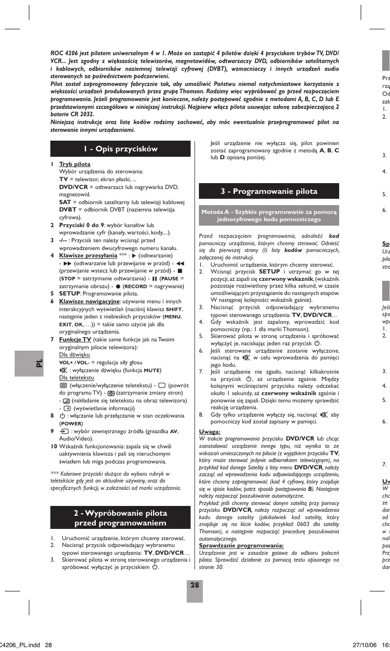 INSTRUKCJA OBSŁUGI ROC 4206 THOMSON