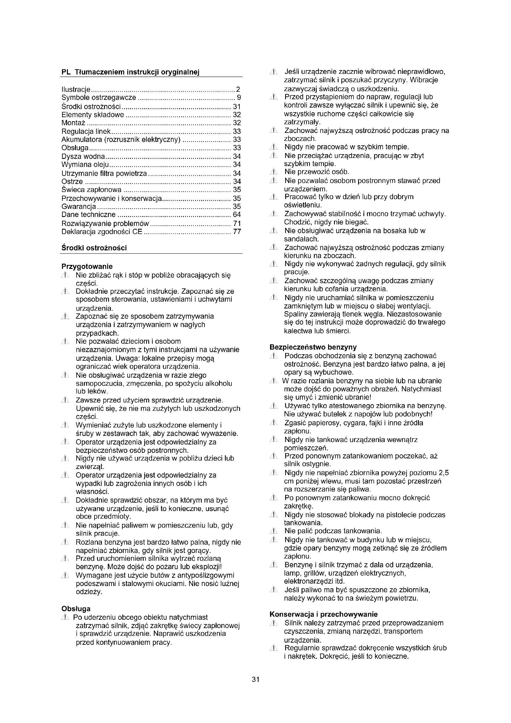- Środki ostrożności p. 31