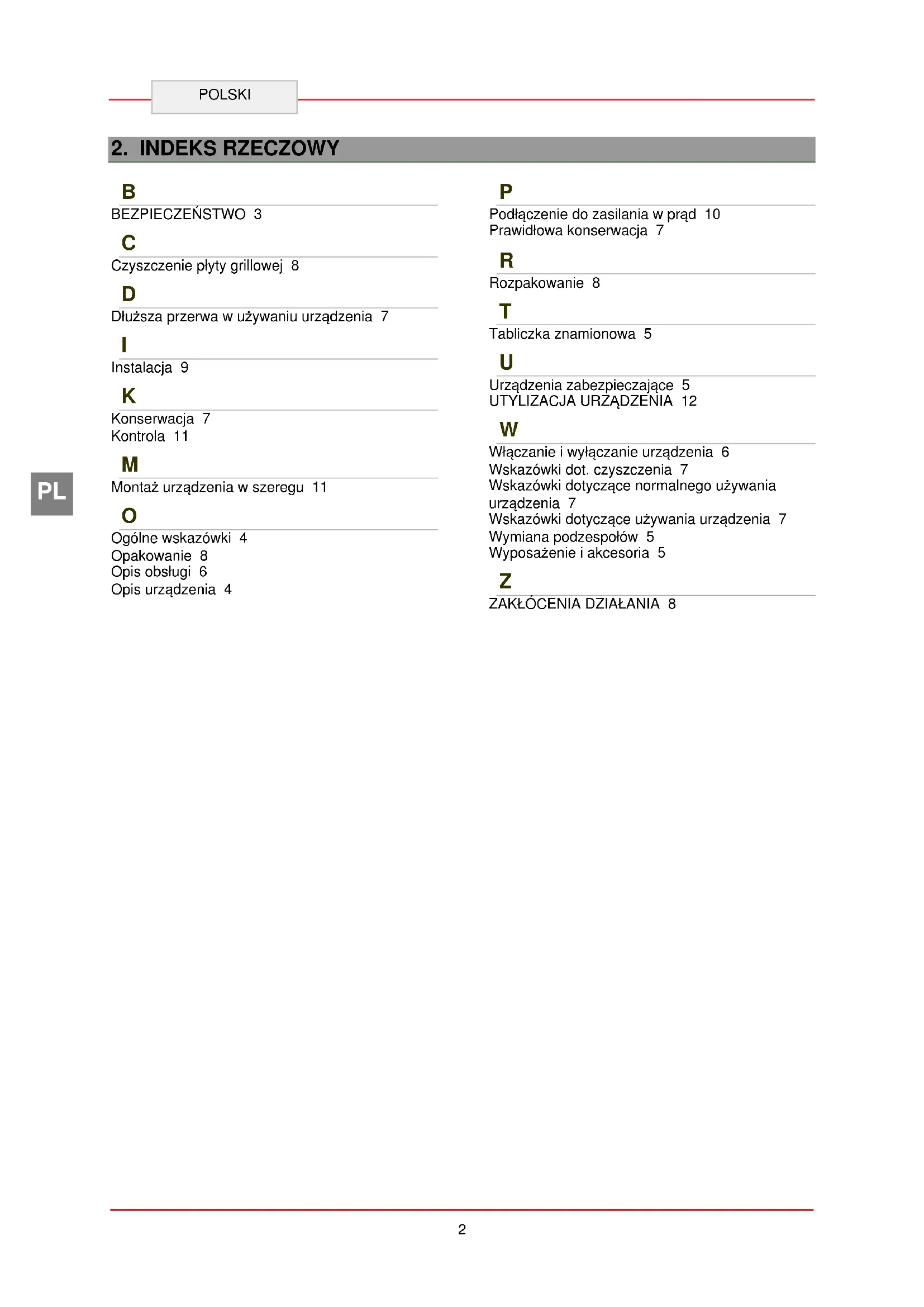 6.2. Prawidłowa konserwacja Odpowiednia konserwacja obejmuje codzienne czyszczenie wszystkich części, które mają kontakt z produktami spożywczymi, oraz regularną konserwację przewodów odprowadzających. Staranna konserwacja umożliwia najlepszą wydajność, dłuższą żywotność urządzenia i prawidłowe działanie urządzeń zabezpieczających. Nigdy nie kierować na urządzenie strumienia wody ani myjki wysokociśnieniowej. Do czyszczenia stali nierdzewnej nie używać waty żelaznej ani szczotki żelaznej, ponieważ mogą one pozostawiać na powierzchni urządzenia cząsteczki żelaza, które na skutek utleniania prowadzą to tworzenia się rdzy. Do usuwania wyschniętych resztek używać szpachelki drewnianej lub szpachelki z tworzywa sztucznego albo miękkiej gąbki czyszczącej. W przypadku dłuższej przerwy w używaniu urządzenia nanieść na wszystkie powierzchnie ze stali nierdzewnej warstwę oleju wazelinowego. Nie używać środków czyszczących, które zawierają niebezpieczne lub szkodliwe dla zdrowia substancje (rozpuszczalniki, benzyna itd.). Na koniec dnia roboczego należy wyczyścić: płytę grillową urządzenie. Regularnie zlecać wyspecjalizowanym pracownikom następujące prace konserwacyjne: kontrola działania instalacji elektrycznej; kontrola działania termostatów bezpieczeństwa.8 POLSKI