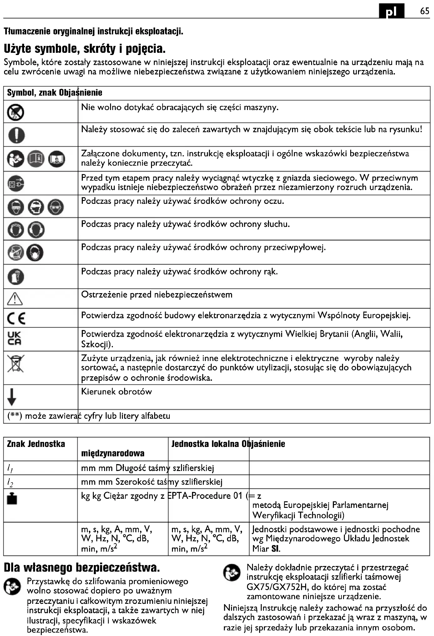 Nalezy dokladnie przyczytc i przyestrzegac instrukcje eksploatacji szlifierki taśmowej GX75/GX752H, do któraj ma zostac zamontowane niniejsze urzadzenia.