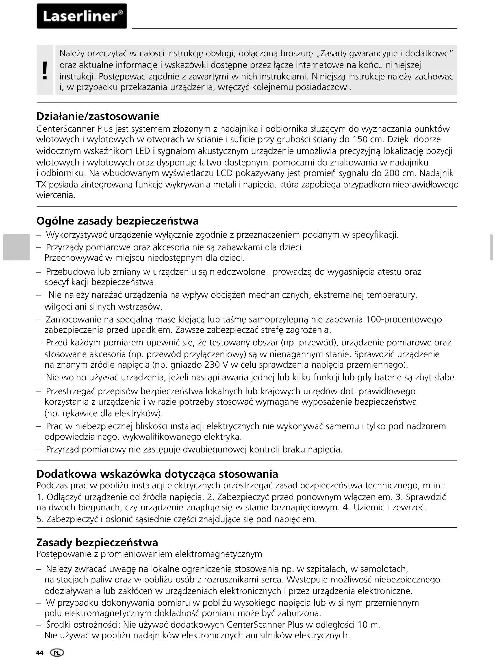 INSTRUKCJA OBSŁUGI CenterScanner Plus Laserliner