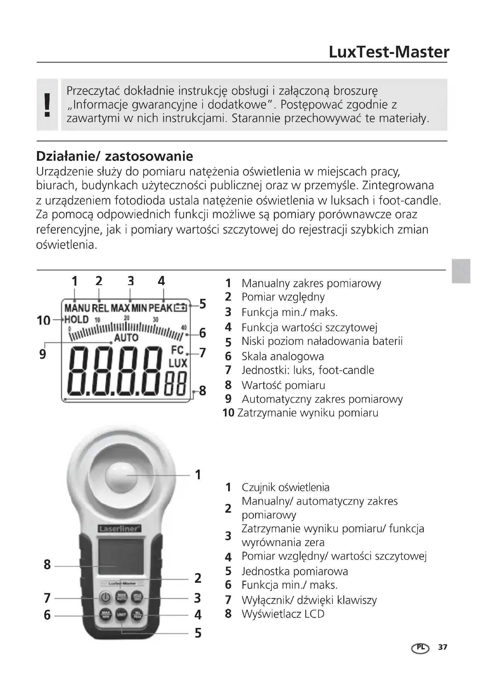 INSTRUKCJA OBSŁUGI LuxTestMaster Laserliner