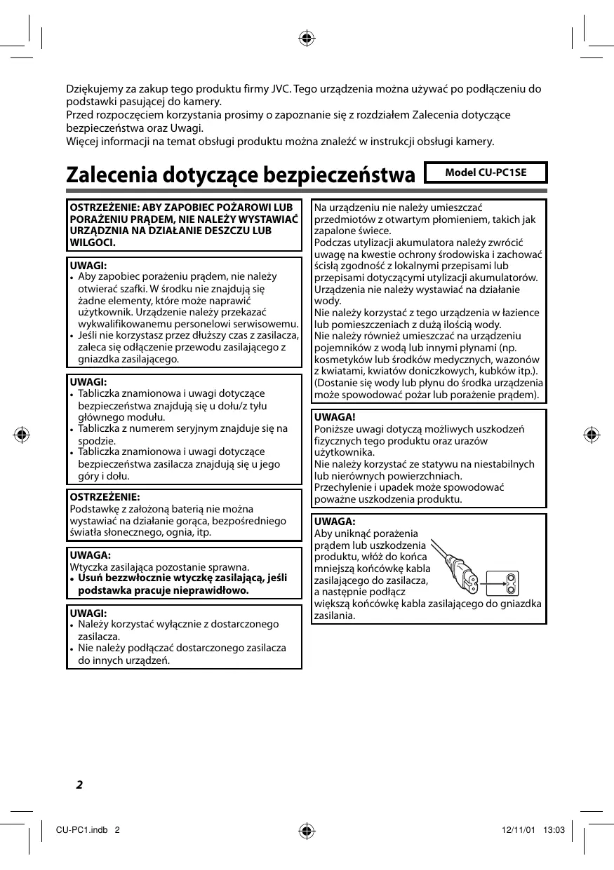 CU-PC1SEU - JVC - Bezpłatna instrukcja obsługi