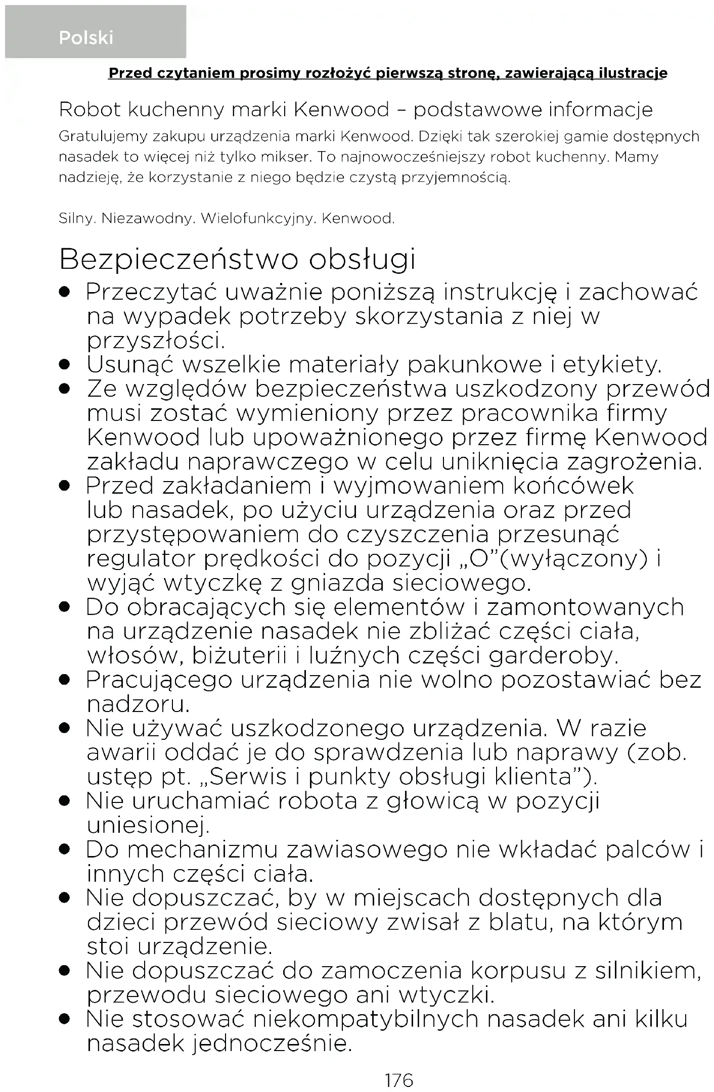 Urządzenie jest przeznaczone wyłącznie do zgodnego z przeznaczeniem użytku domowego. Firma Kenwood nie ponosi odpowiedzialności 178Przed pierwszym użyciem