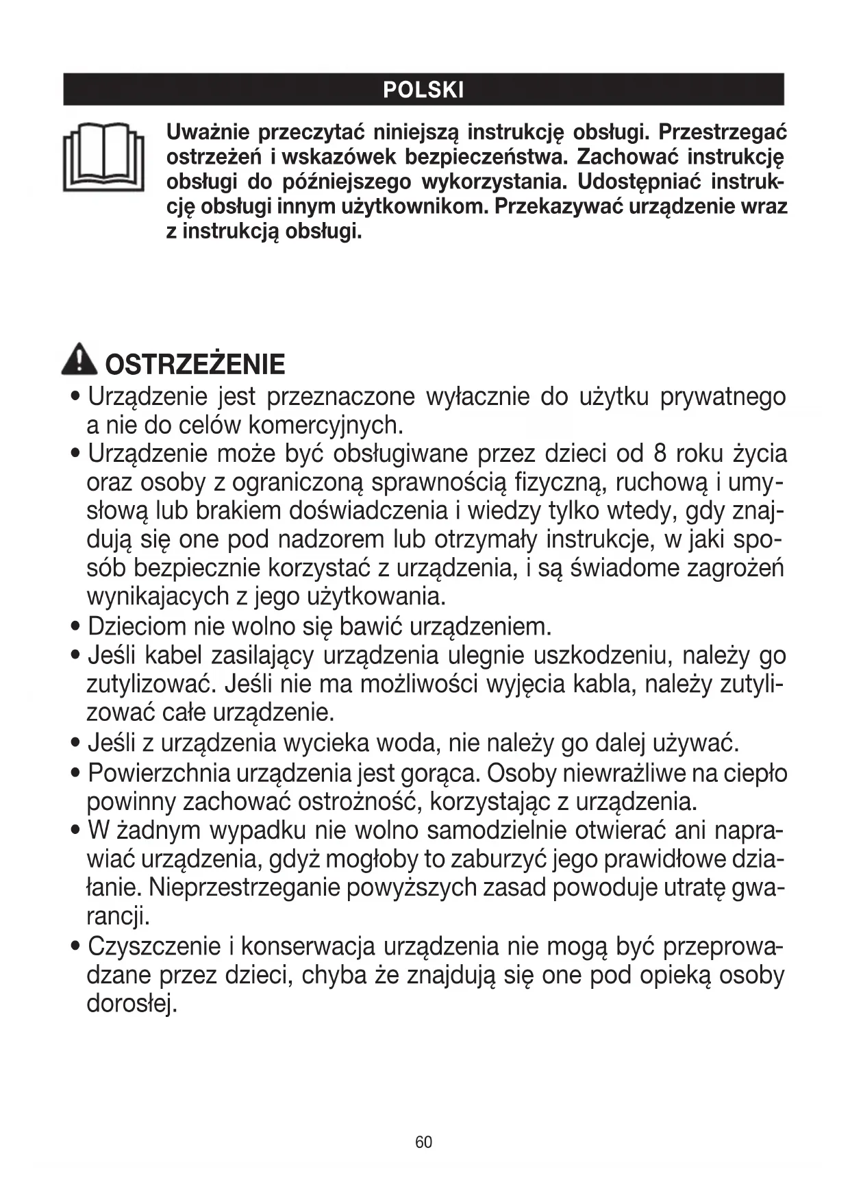 Возможны ошибки иизменения60 Uważnie przeczytać niniejszą instrukcję obsługi. Przestrzegać ostrzeżeń iwskazówek bezpieczeństwa. Zachować instrukcję obsługi do późniejszego wykorzystania. Udostępniać instruk