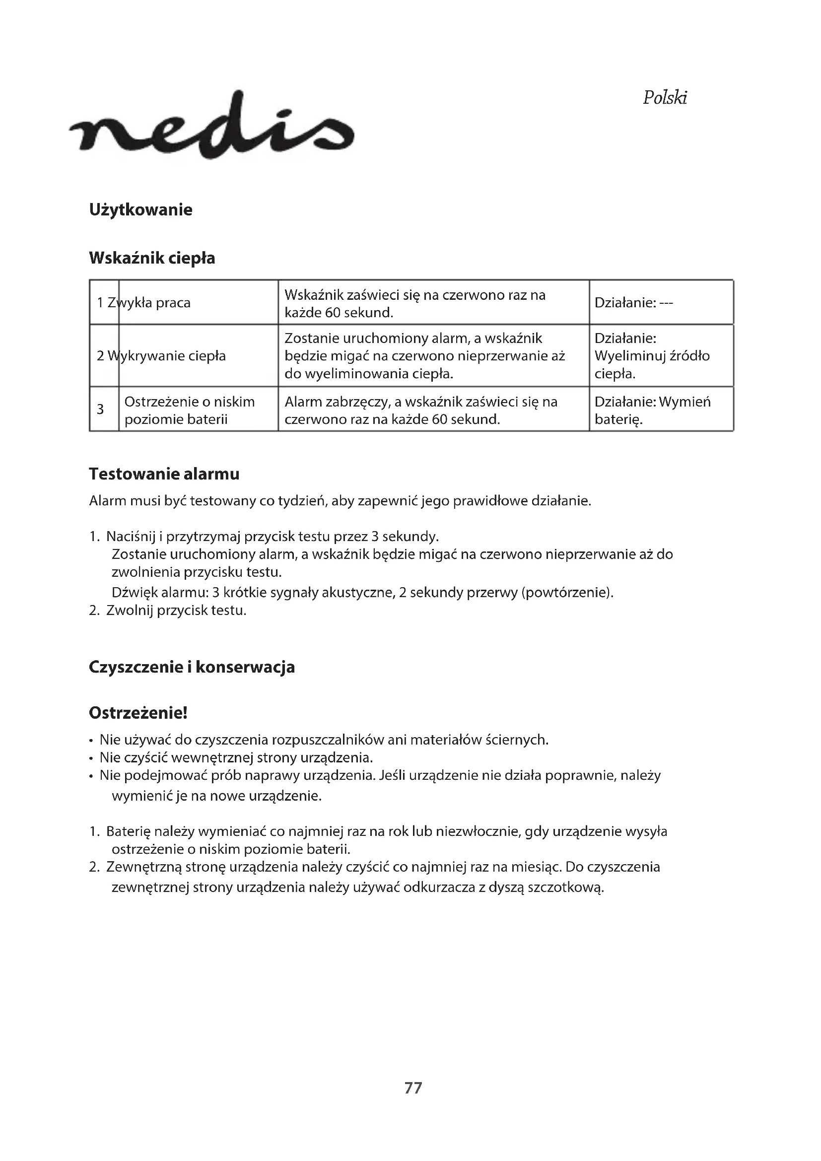 DTCTH10WT - Detektor NEDIS - Bezpłatna instrukcja obsługi