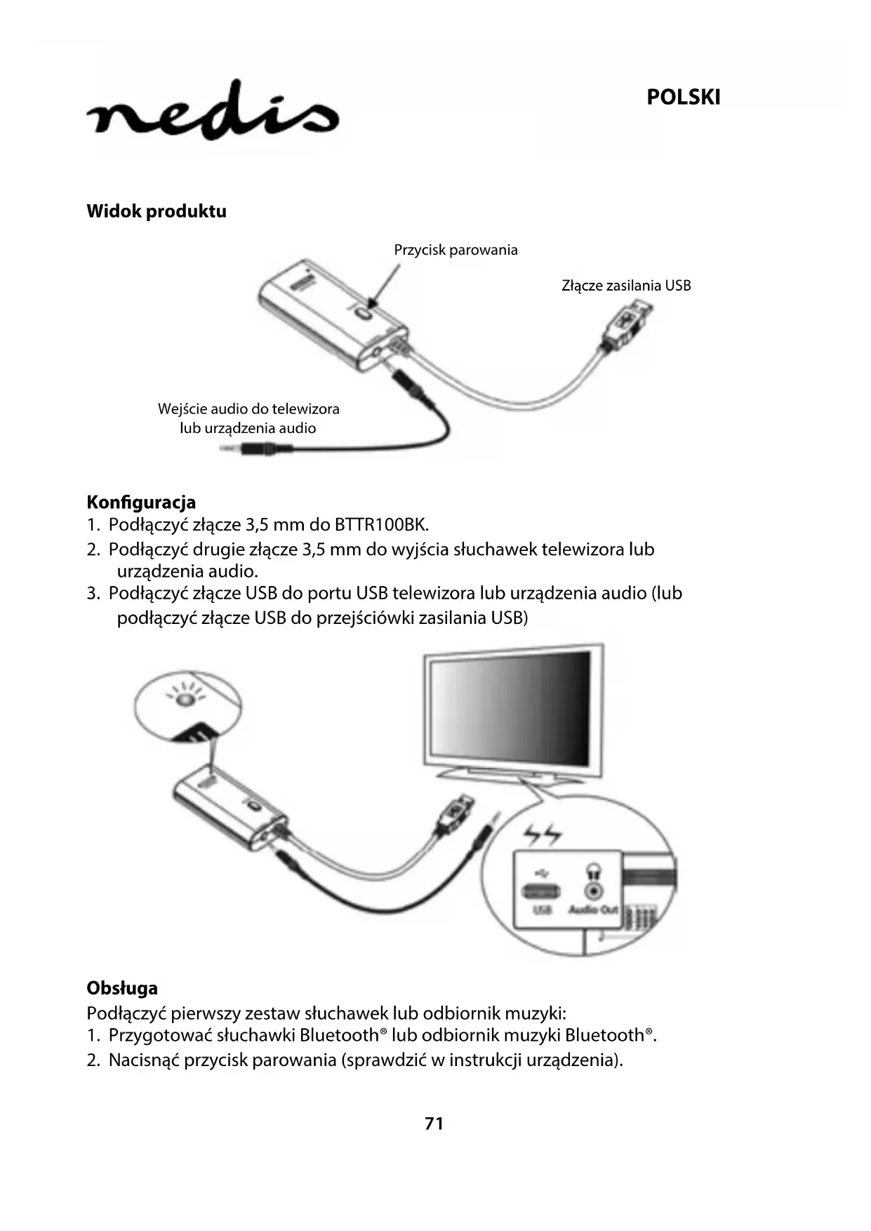 BTTR100BK - Odbiornik NEDIS - Bezpłatna instrukcja obsługi