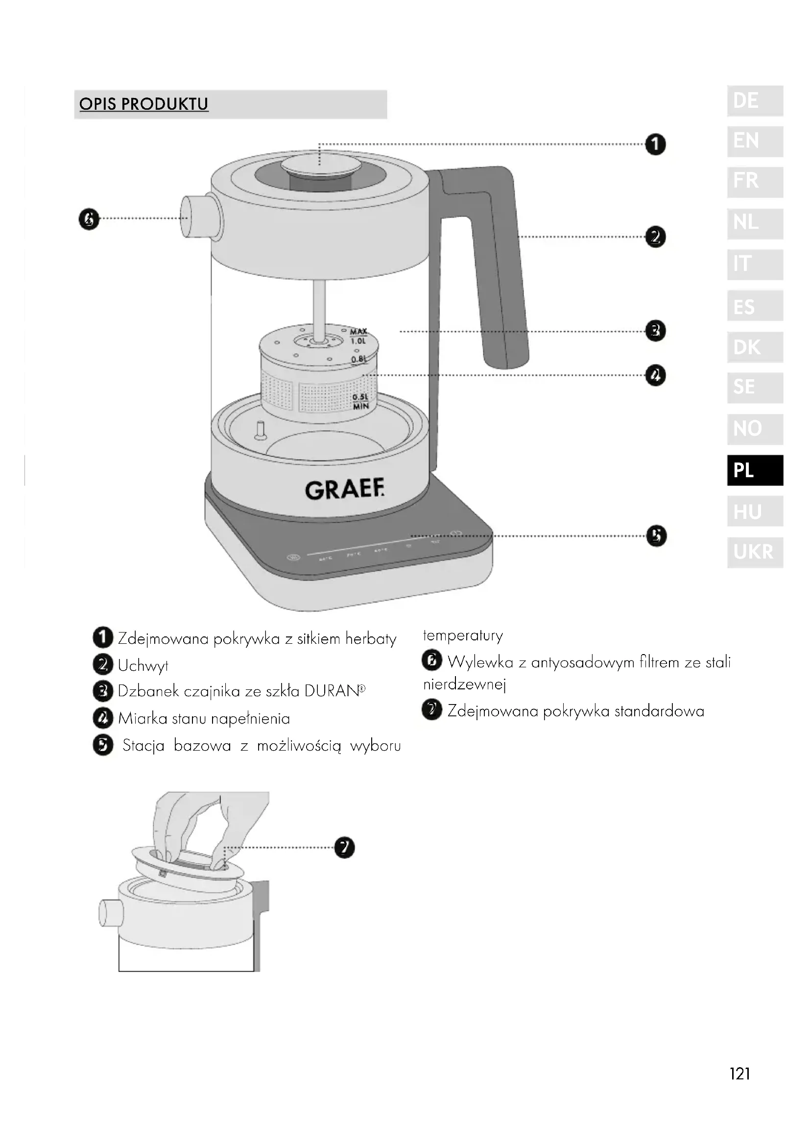 UKR OPIS PRODUKTU Zdejmowana pokrywka z sitkiem herbaty