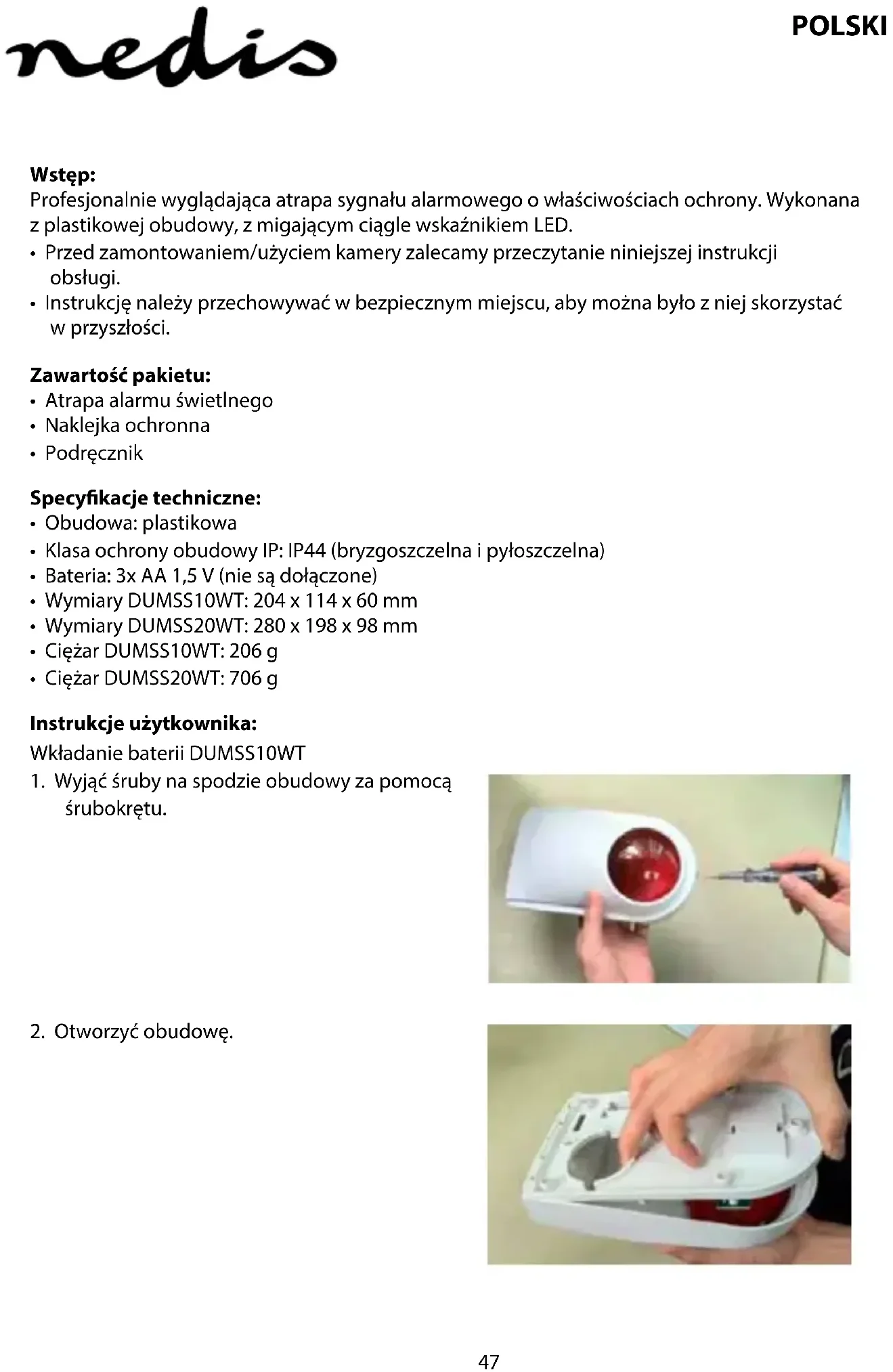 DUMSS20WT - System alarmowy NEDIS - Bezpłatna instrukcja obsługi