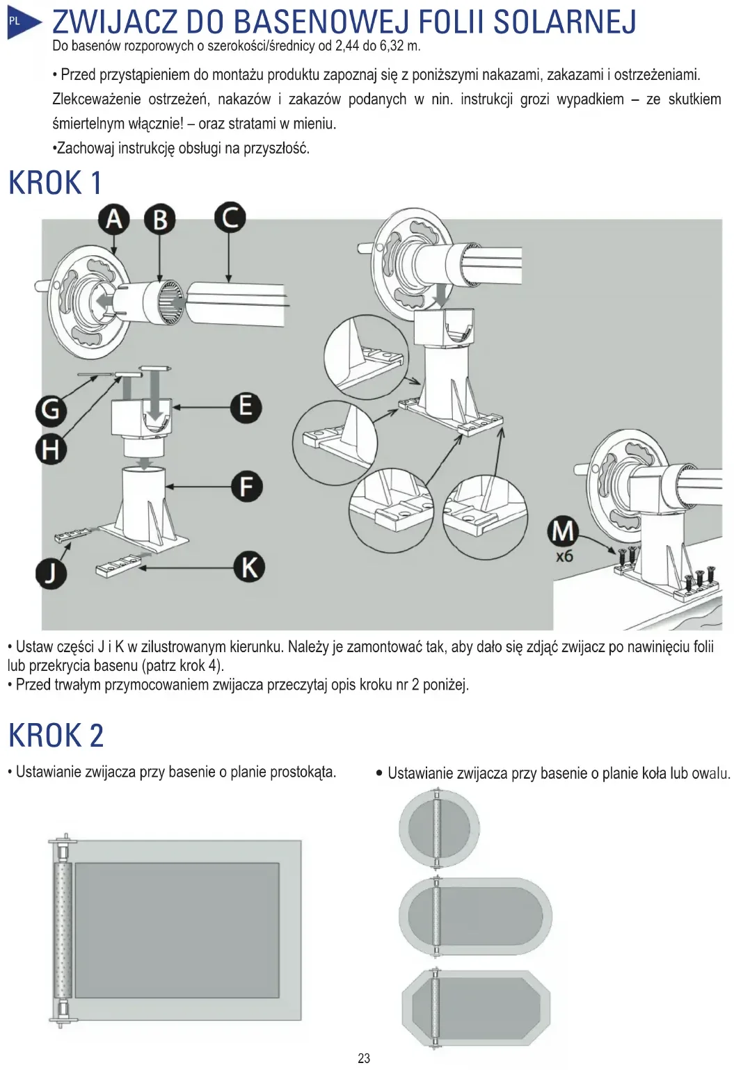 - Ustawianie zwijacza przy basenie o planie koła lub owalu.24 KROK 3