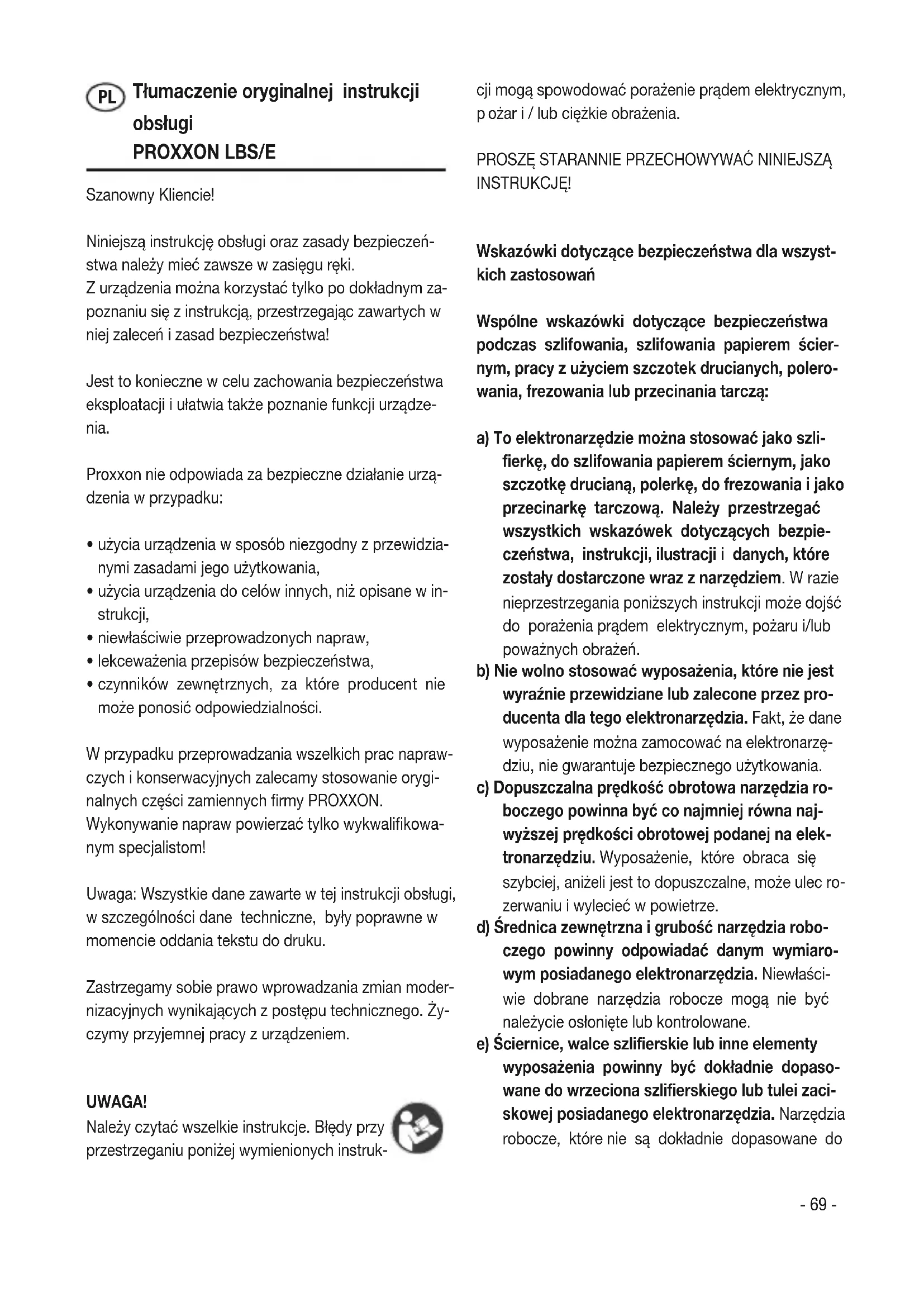 INSTRUKCJA OBSŁUGI LBSE PROXXON