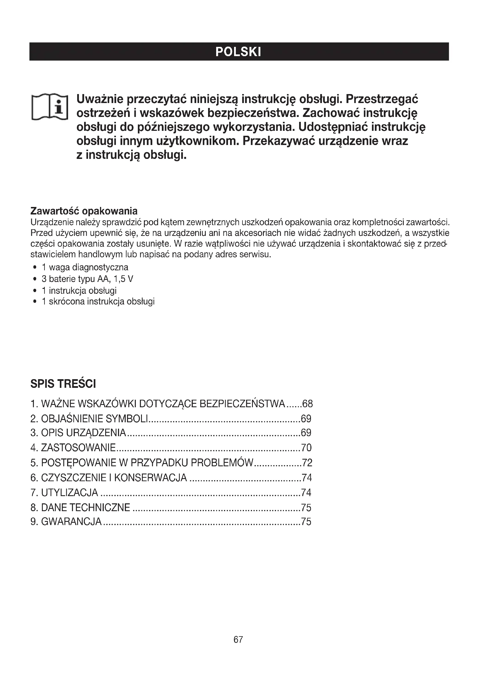 Более подробную информацию огарантии игарантийных условиях см.вприлагаемом гарантийном листе. Возможны ошибки иизменения67 Uważnie przeczytać niniejszą instrukcję obsługi. Przestrzegać ostrzeżeń iwskazówek bezpieczeństwa. Zachować instrukcję obsługi do późniejszego wykorzystania. Udostępniać instrukcję obsługi innym użytkownikom. Przekazywać urządzenie wraz zinstrukcją obsługi.
