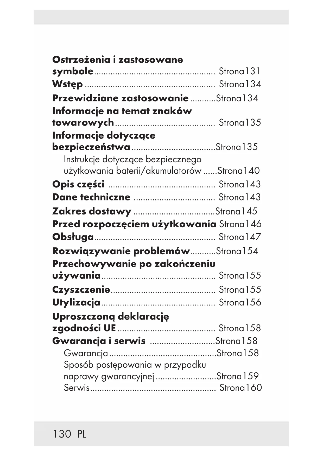 Uwagi dotyczące obsługi i bezpieczeństwa Strona 130