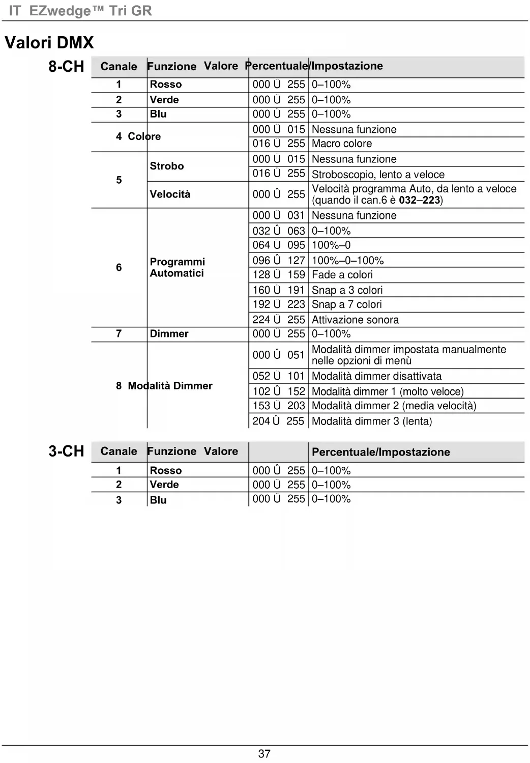 EZwedge™ Tri Quick Reference Guide (QRG) zawiera podstawowe informacje o produkcie takie jak montaż, opcje menu oraz wartości DMX. Szczegółowe informacje znajdują się w instrukcji obsługi na stronie www.chauvetlighting.com. Oświadczenie