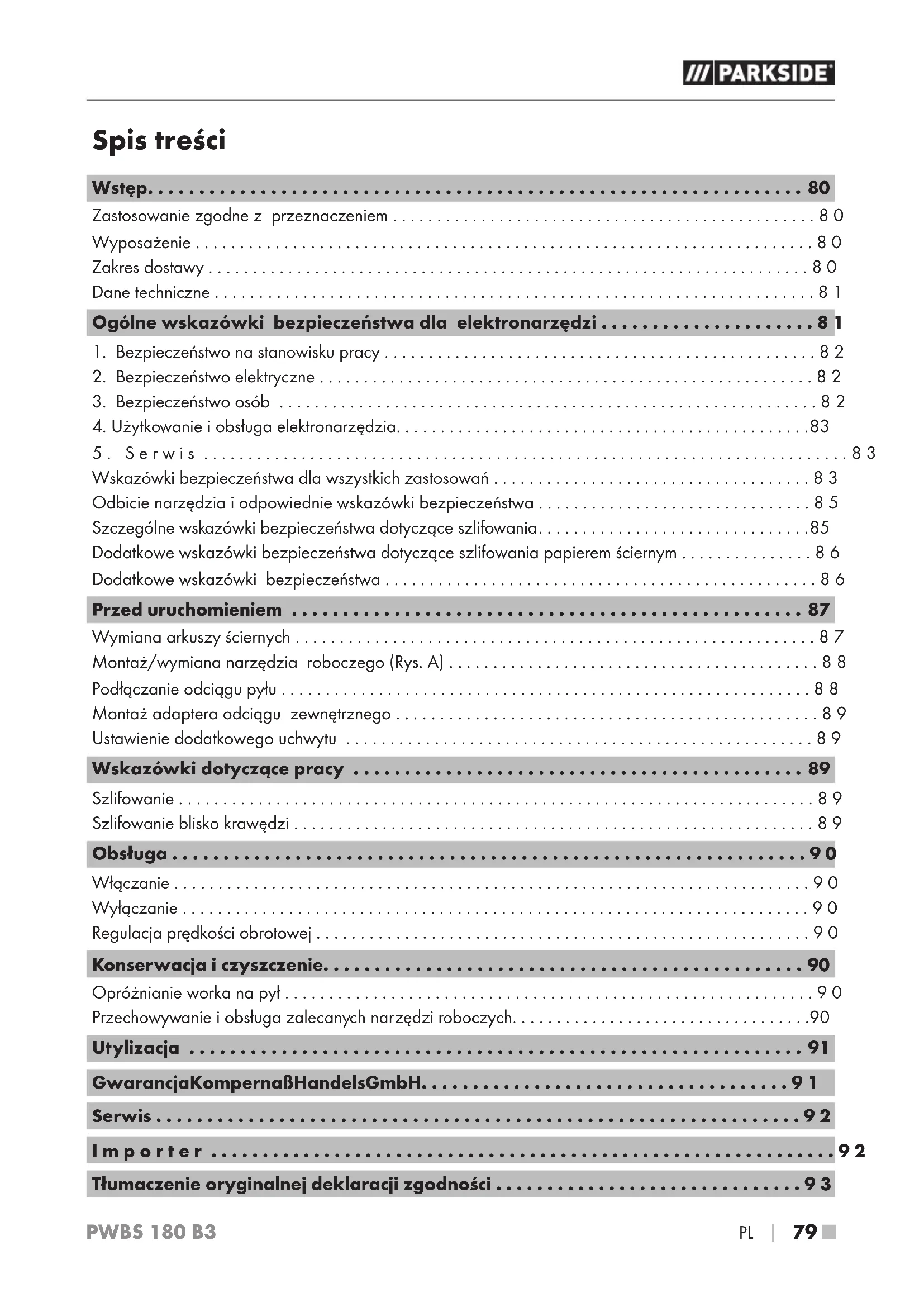 - Tłumaczenie oryginalnej deklaracji zgodności PWBS 180 B3 ■ 80 p. 93