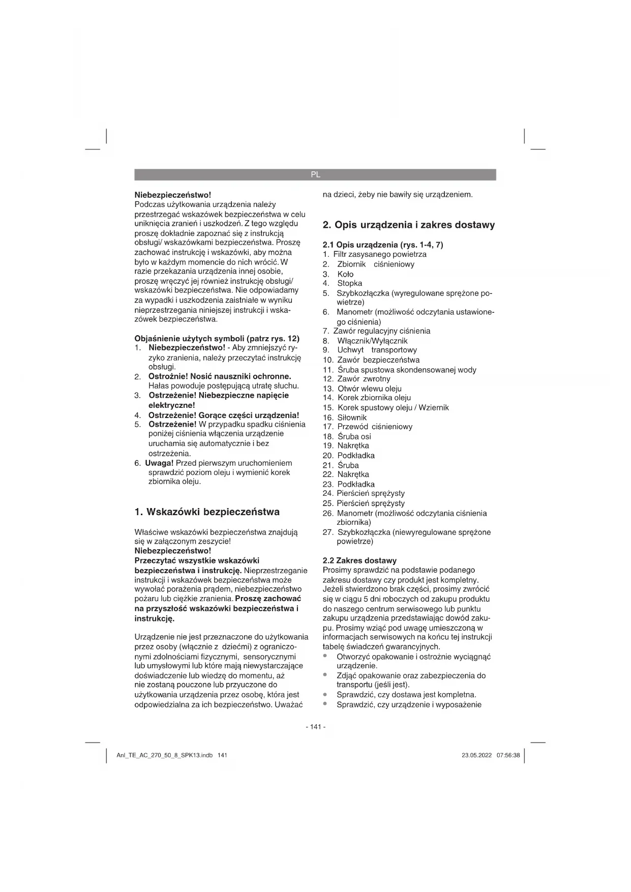 Sprawdzić, czy urządzenie i wyposażenie Anl_TE_AC_270_50_8_SPK13.indb 141Anl_TE_AC_270_50_8_SPK13.indb 141 23.05.2022 07:56:3823.05.2022 07:56:38PL