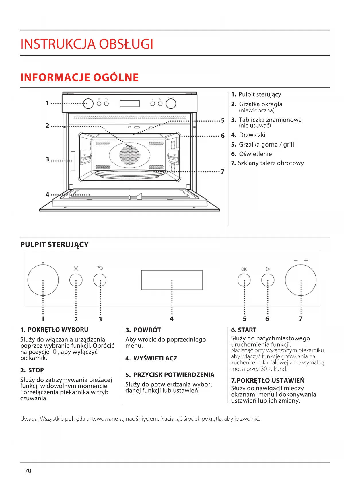 Służy do natychmiastowego uruchomienia funkcji Nacisnąć przy wyłączonym piekarniku, aby włączyć funkcję gotowania na kuchence mikrofalowej z maksymalną mocą przez 30 sekund.