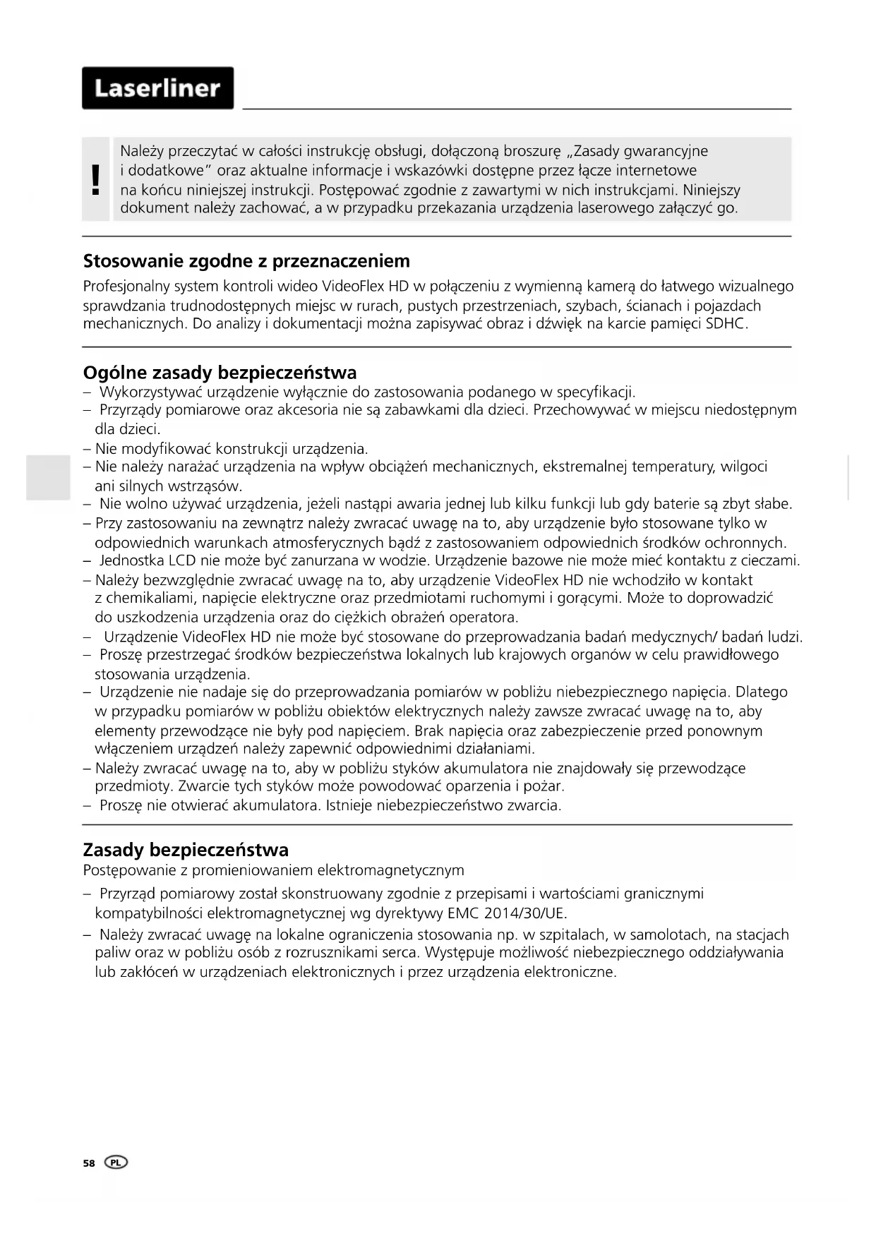 INSTRUKCJA OBSŁUGI VideoFlex HD Micro Laserliner