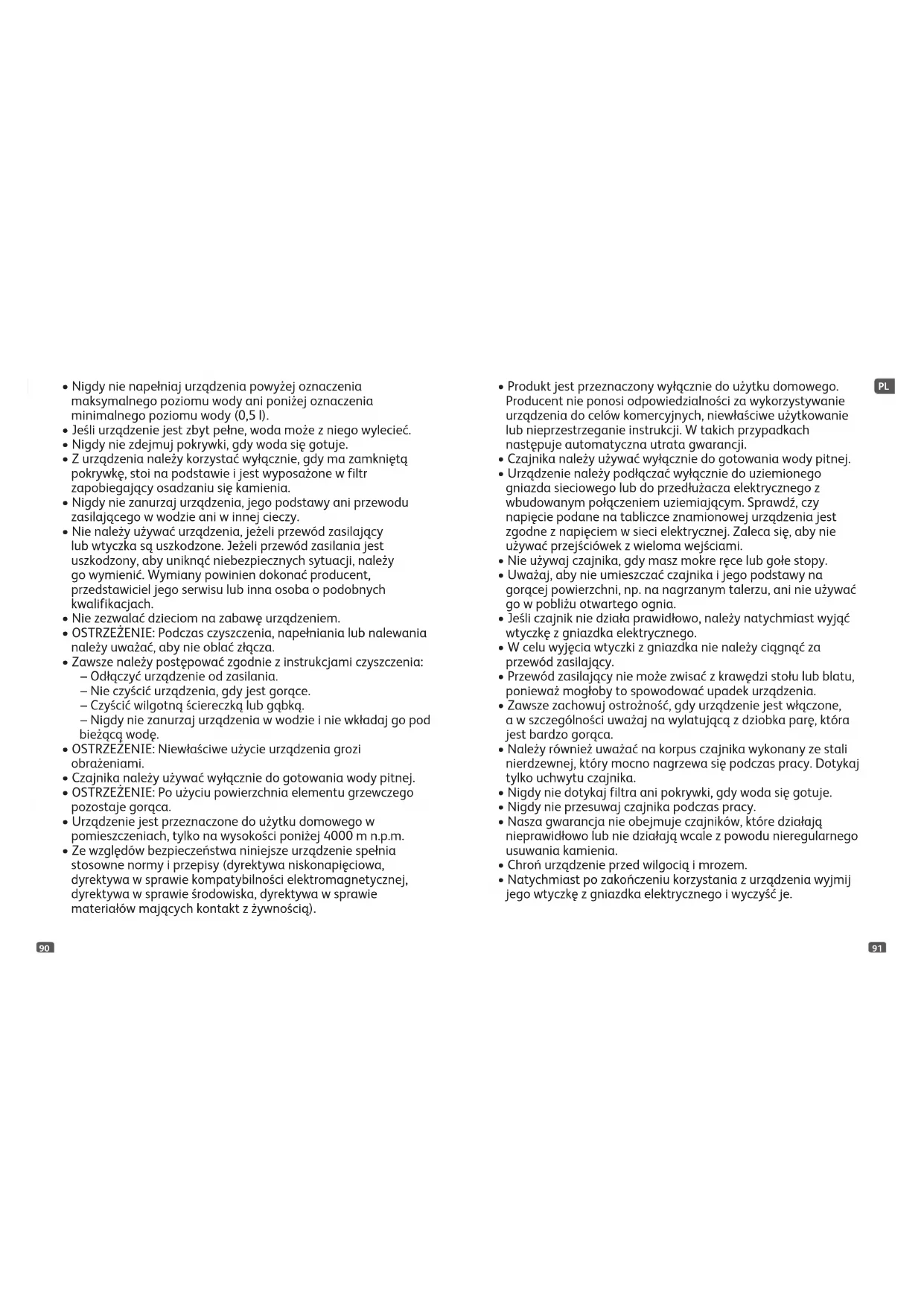 - Czajnika należy używać wyłącznie do gotowania wody pitnej.